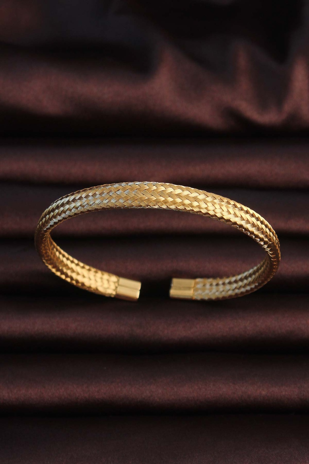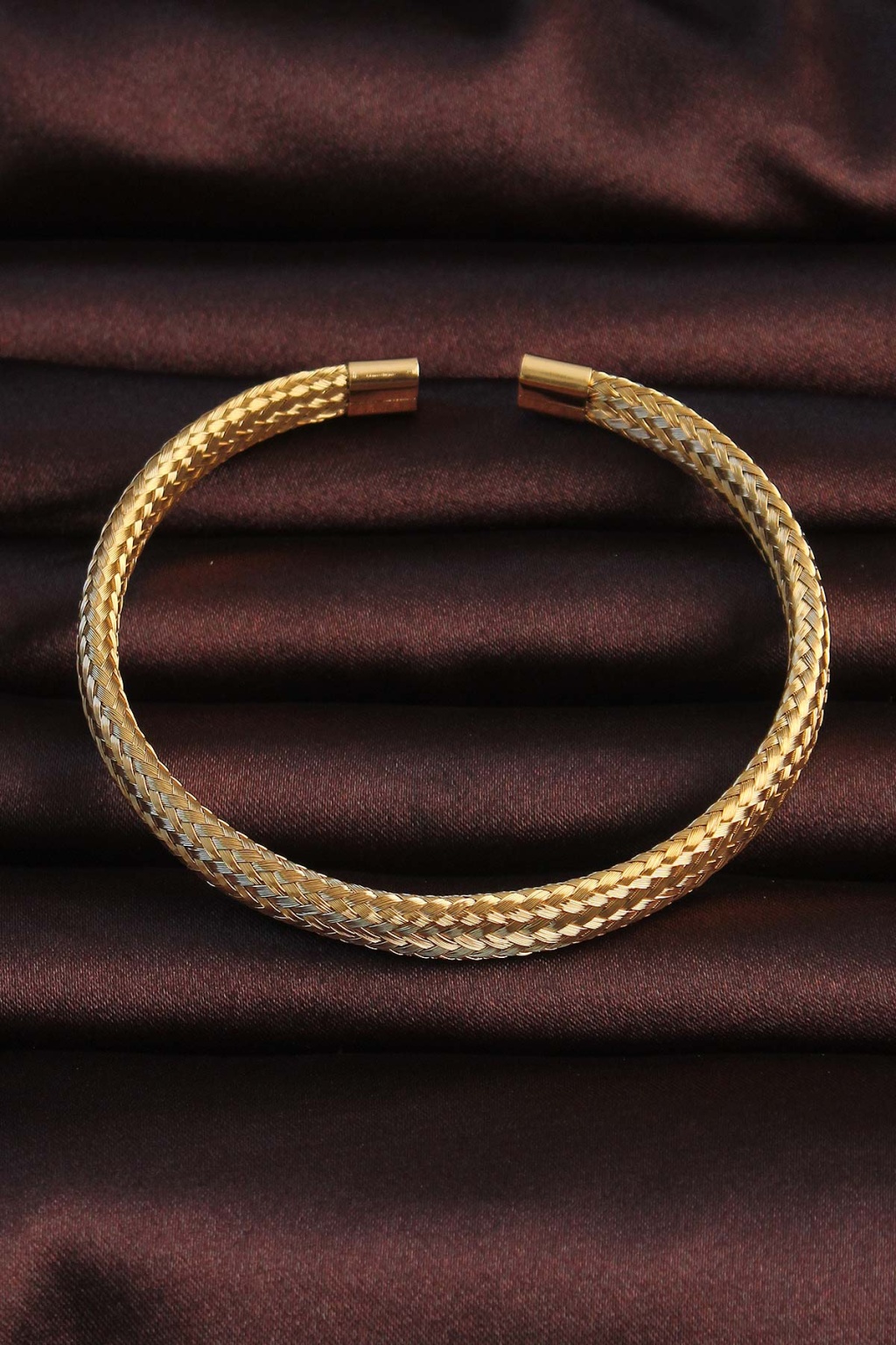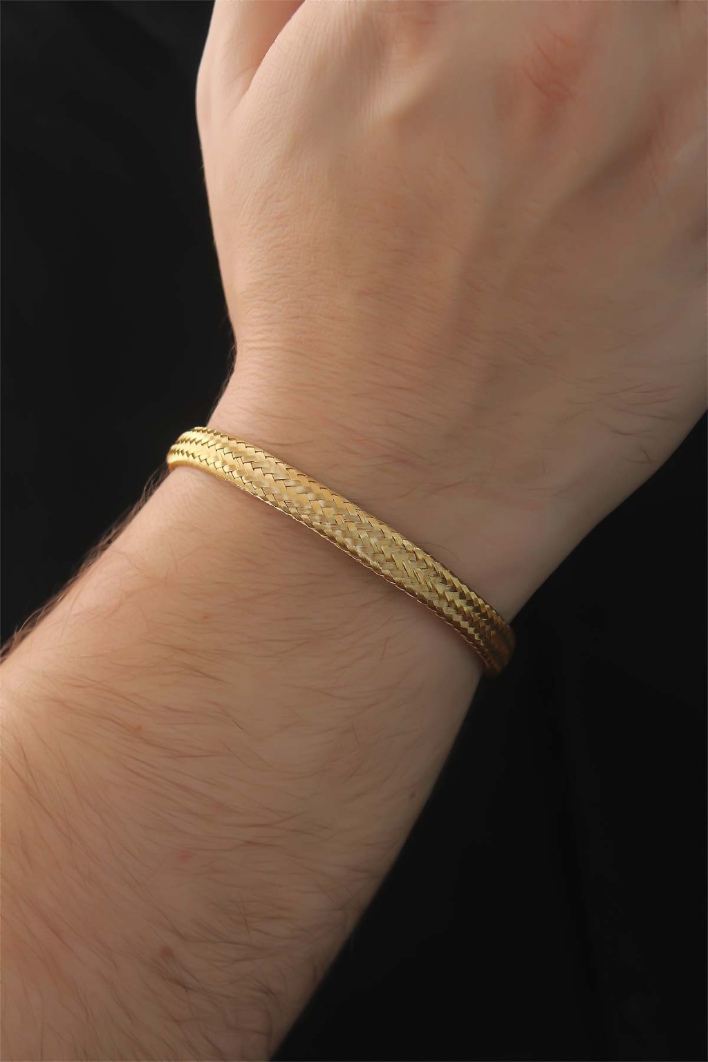 316L Çelik Altın Renk Hasır Görünüm Erkek Bileklik - Lisinya