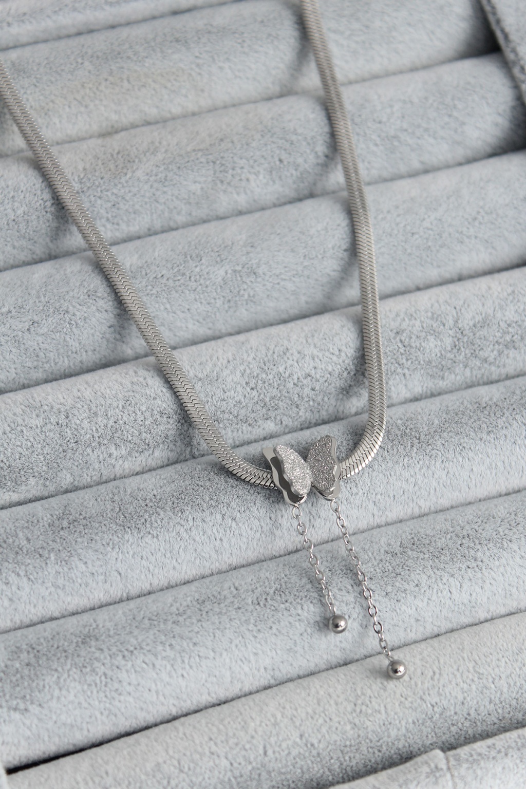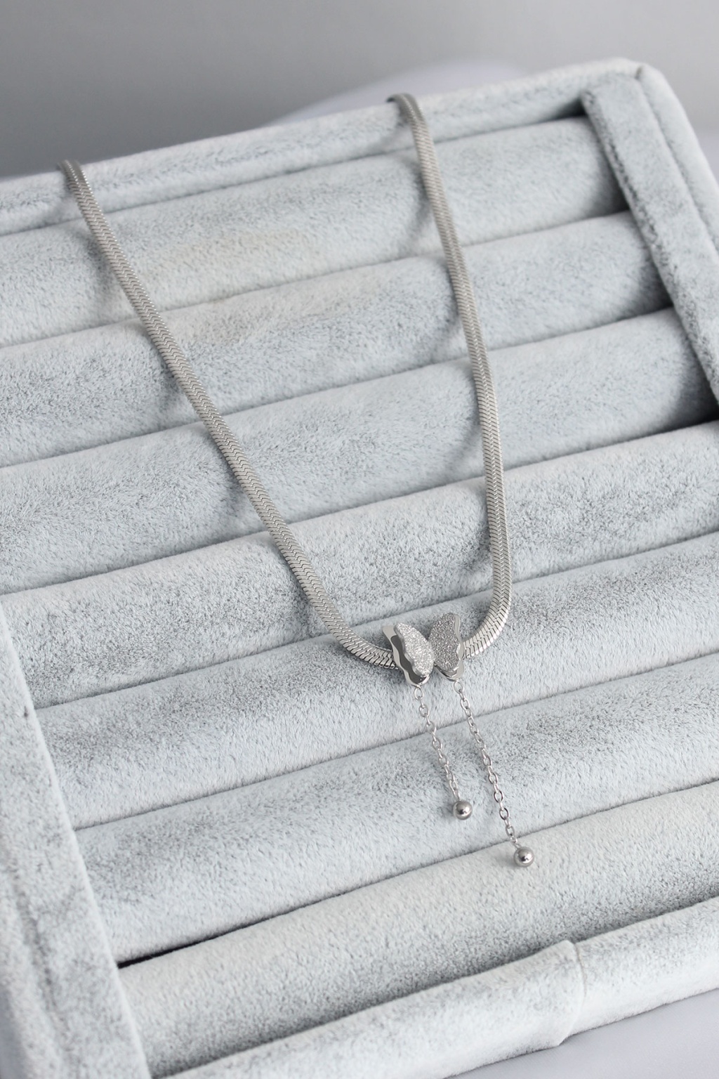 316L Çelik Gümüş Renk İtalyan Zincir Model Simli Kelebek Figür Kadın Kolye - Lisinya