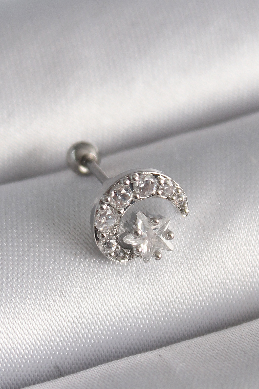 316L Çelik Gümüş Renk Zirkon Taşlı Ay Yıldız Tragus Piercing - Lisinya