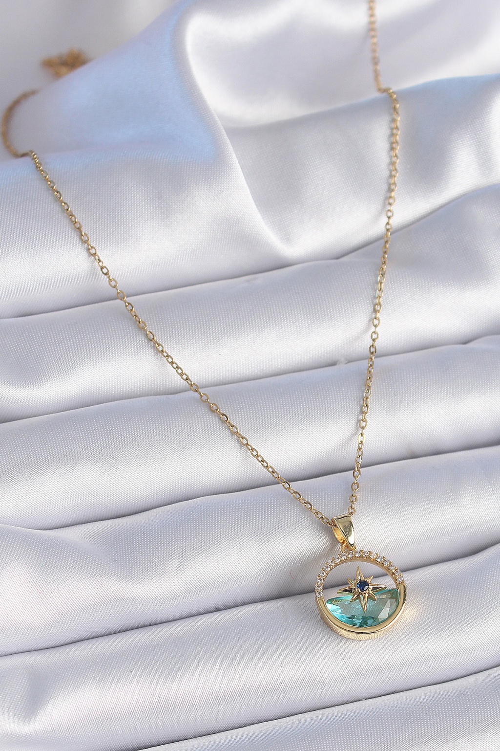 316L Çelik Zincir Gold Renk Zirkon Taşlı Deniz Görünüm Kutup Yıldız Model Kadın Kolye - Lisinya