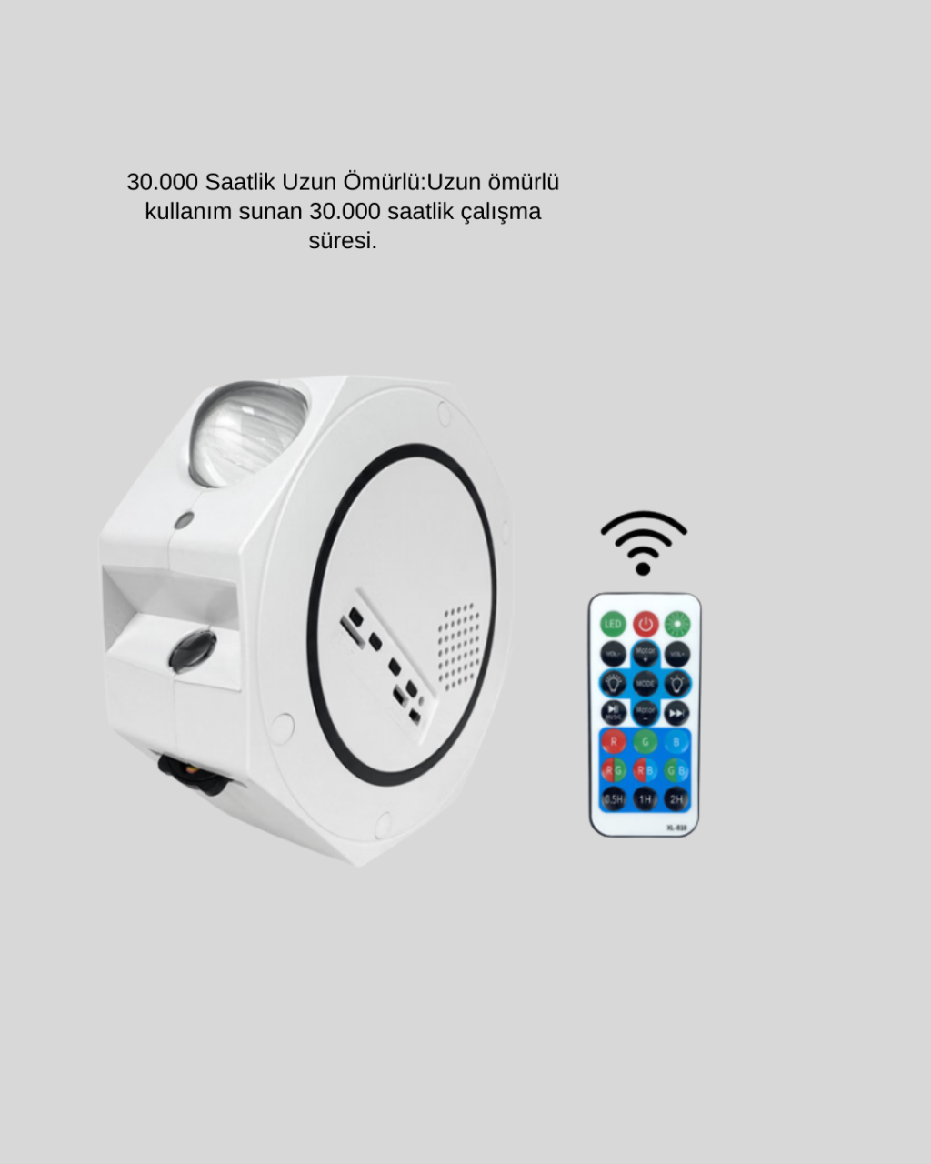 360° döndürülebilir projeksiyon özelliği ile tasarlanan bu yıldızlı gökyüzü projektörü, bulunduğu ortamı saniyeler içinde büyüleyici bir atmosfere dönüştürür. Serbestçe ayarlanabilen projeksiyon açısı sayesinde tavan, duvar veya geniş yüzeylerde en ideal görüntüyü elde etmenizi sağlar. Yıldızlı gece gökyüzü efekti, gerçekçi ışık geçişleriyle birleşerek bulunduğunuz alanı adeta göksel bir cennete dönüştürür.Çok yönlü aydınlatma modları sayesinde farklı ruh hallerine ve kullanım senaryolarına uyum sağlar. Yıldızlarla dolu sakin bir gece, huzur veren okyanus dalgaları ya da doğayı anımsatan yumuşak orman ışıkları arasından dilediğinizi seçebilirsiniz. Tek tuşla değiştirilebilen modlar, ortamın ambiyansını anında dönüştürmenize olanak tanır.Uzaktan kumanda özelliği, kullanım konforunu üst seviyeye taşır. Projektörü yerinizden kalkmadan kontrol edebilir, ışık modlarını değiştirebilir ve parlaklık ayarlarını kolayca düzenleyebilirsiniz. Zamanlayıcı fonksiyonu sayesinde cihaz belirlediğiniz sürede otomatik olarak kapanır. Bu özellik, özellikle uyku öncesi kullanımda büyük kolaylık sağlar ve yıldızlı bir gökyüzü altında huzurla uykuya dalmanıza yardımcı olur.Kompakt ve hafif tasarımı sayesinde taşınabilir kullanım sunar. Evde, seyahatte veya farklı odalarda rahatlıkla kullanılabilir. Oyun geceleri, film izleme keyfi, romantik akşamlar veya meditasyon seansları için ideal bir atmosfer oluşturur. Günün stresinden uzaklaşmak ve bulunduğunuz alanı özel bir deneyime dönüştürmek isteyenler için mükemmel bir çözümdür.Ürün Markası: Lisinya