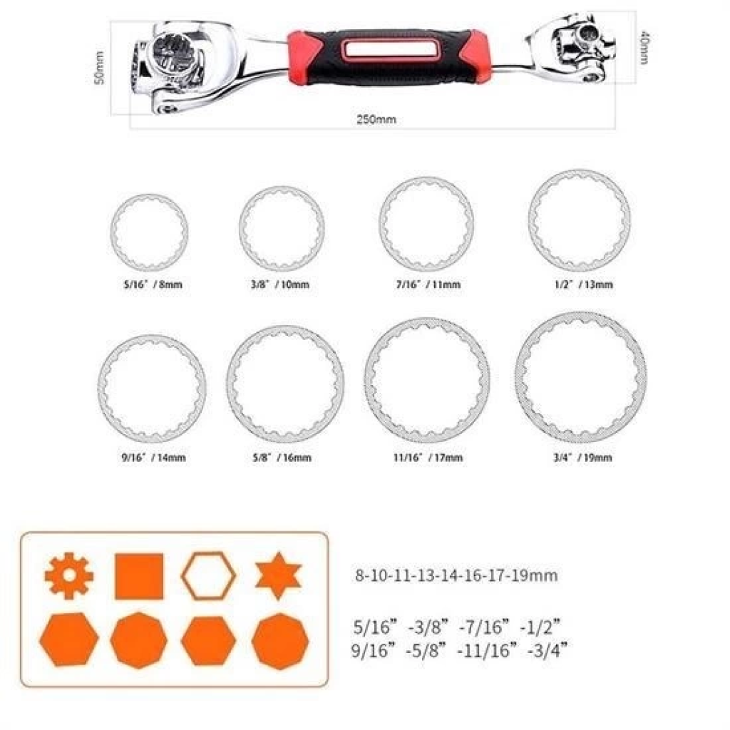 Lokma El Aleti, Çeşitli metrik ölçüleri için uygundur: 19 mm 3/4 ", 17 mm 11/16", 16 mm 5/8 ", 14 mm 9/16", 13 mm 1/2 ", 11 mm 7/16" , 10 mm 3/8 ", 8 mm 5/16"
