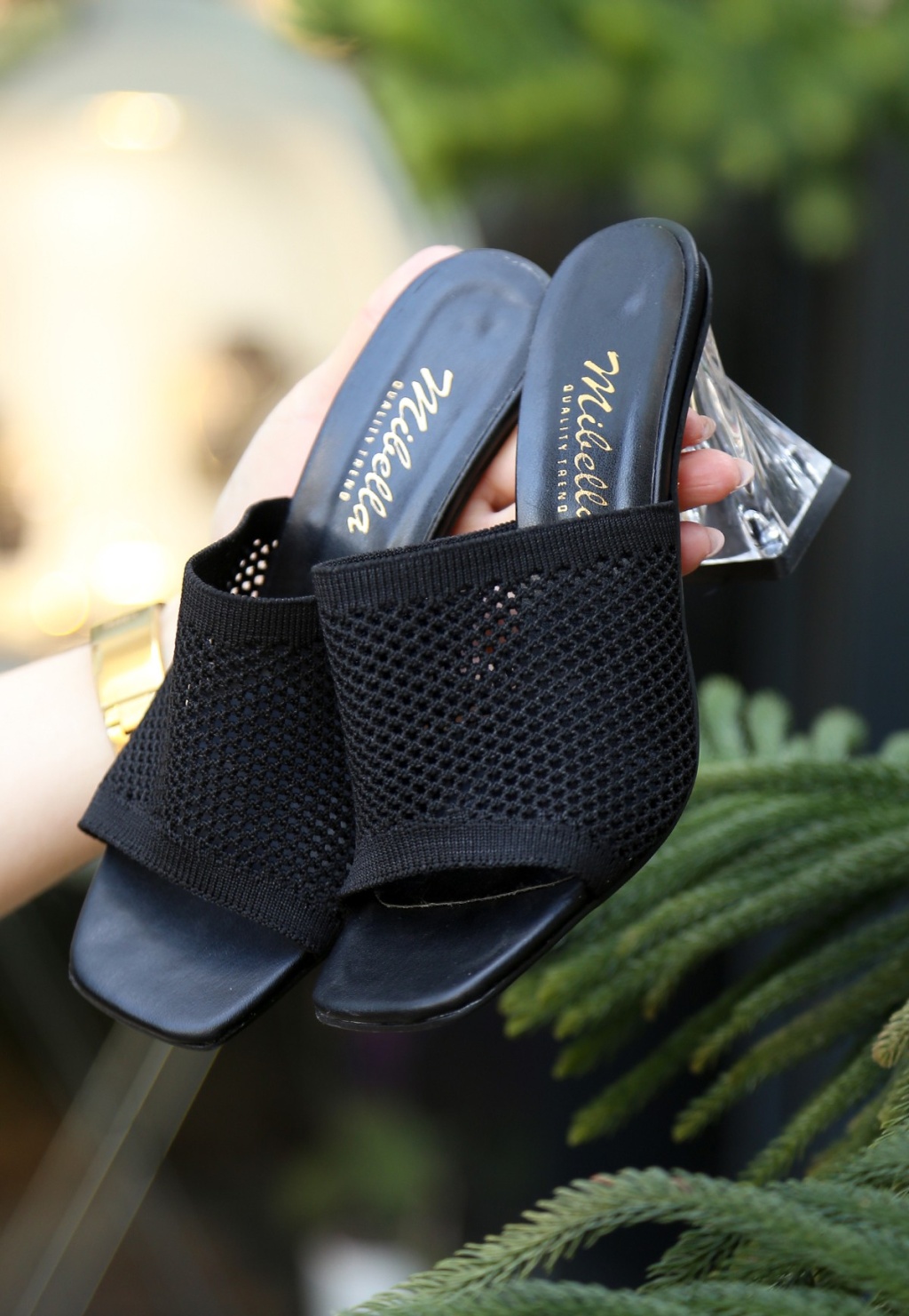Akva Siyah Triko Şeffaf Topuklu Terlik - Lisinya