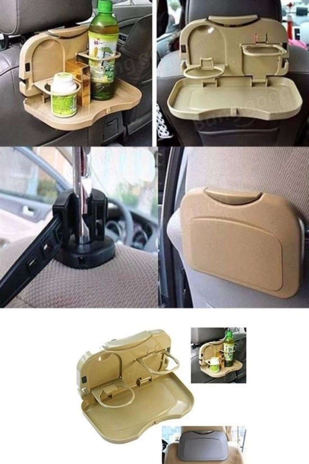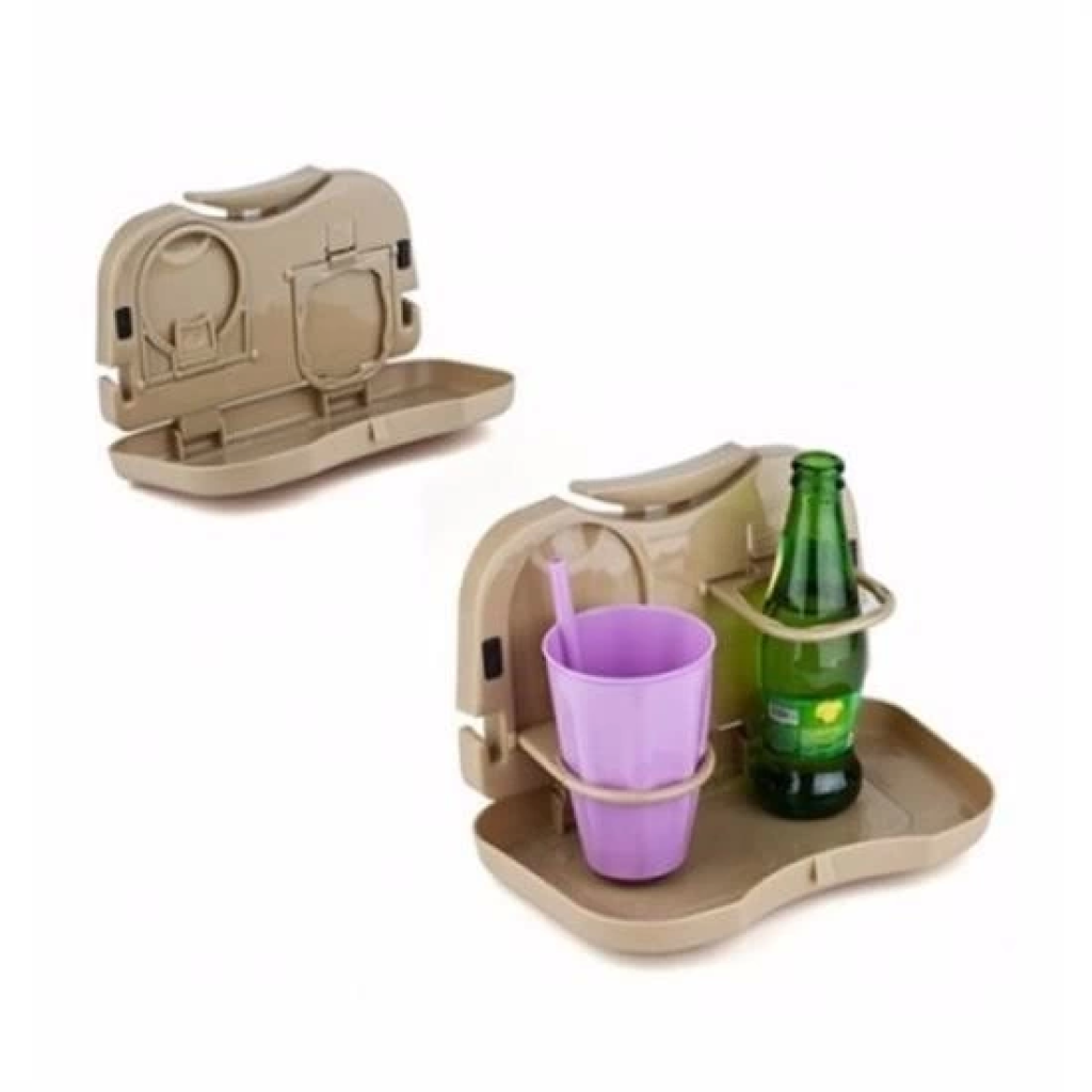 Araç İçi Koltuk Arkası Katlanabilir Bardak Tutuculu Bej Tepsi