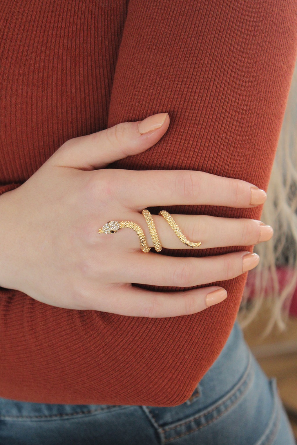 Ayarlanabilir Gold Renk Zirkon Taşlı Yılan Yüzük - Lisinya