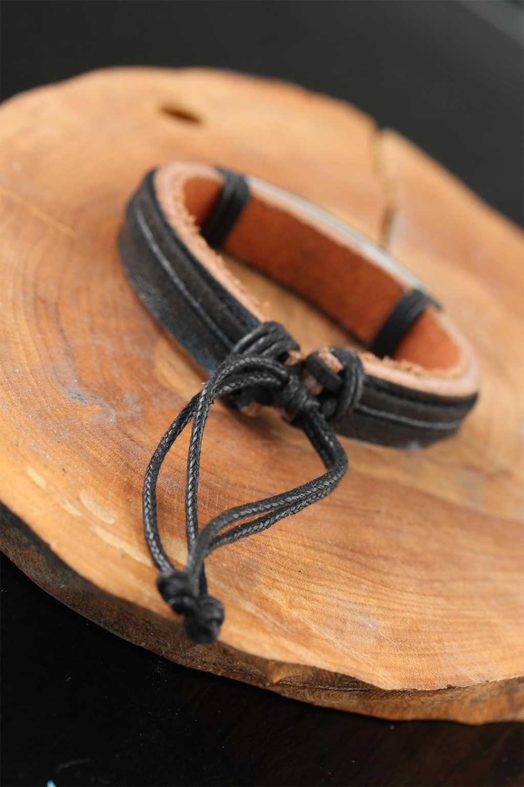 Çelik Aksesuarlı Siyah Renk Deri Erkek Bileklik - Lisinya