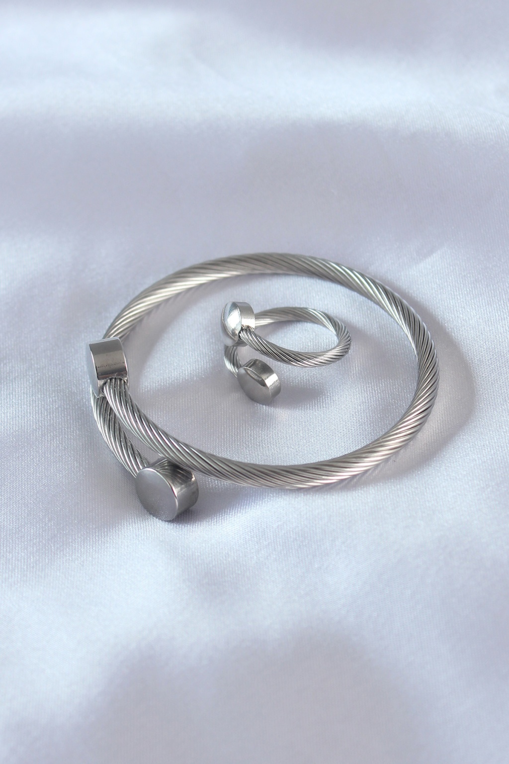 Çelik Gümüş Renk Sıkı Burgu Model Erkek Bileklik Yüzük Seti - Lisinya