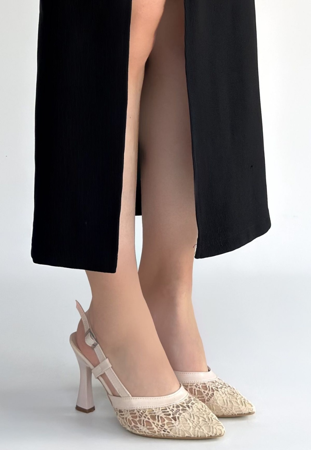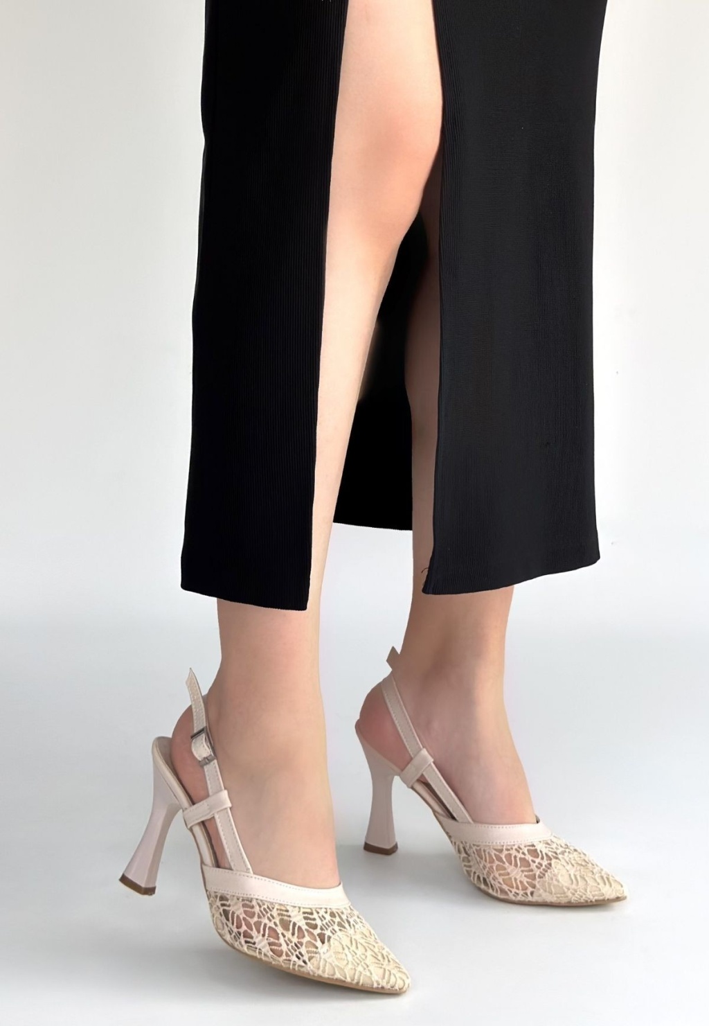 Ceta Bej Cilt Tül Detaylı Topuklu Ayakkabı - Lisinya
