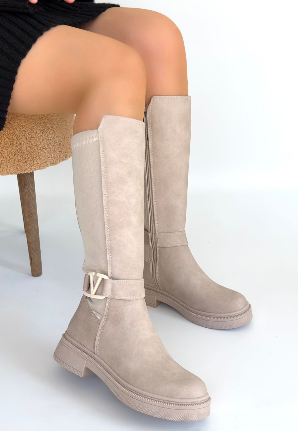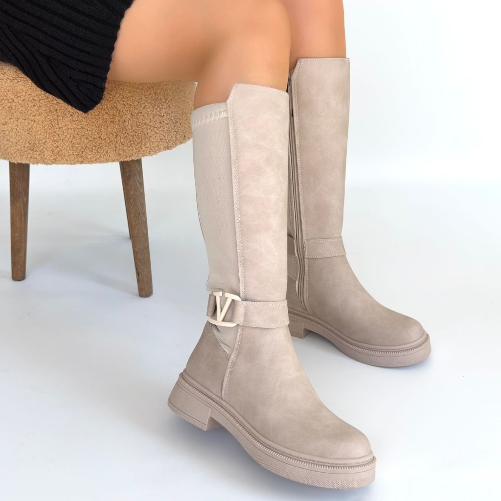 Detay: Topuklu Yandan Fermuarlı Diz Altı Çizme