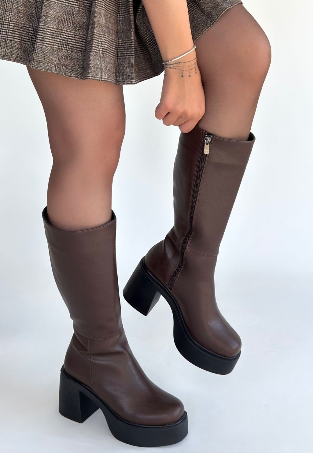 Detay: Topuklu Yandan Fermuarlı Diz Altı Çizme