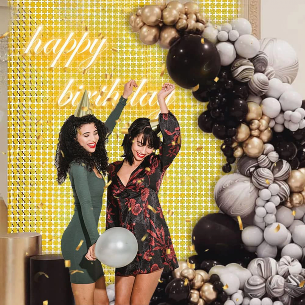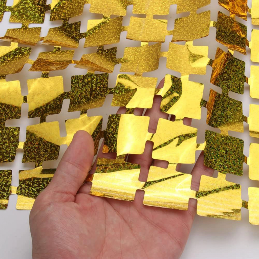 Ekstra Metalize Altın Renk Disko Dikdörtgen Kesim Kapı Perdesi Dekorasyon 1x2 Metre - Lisinya