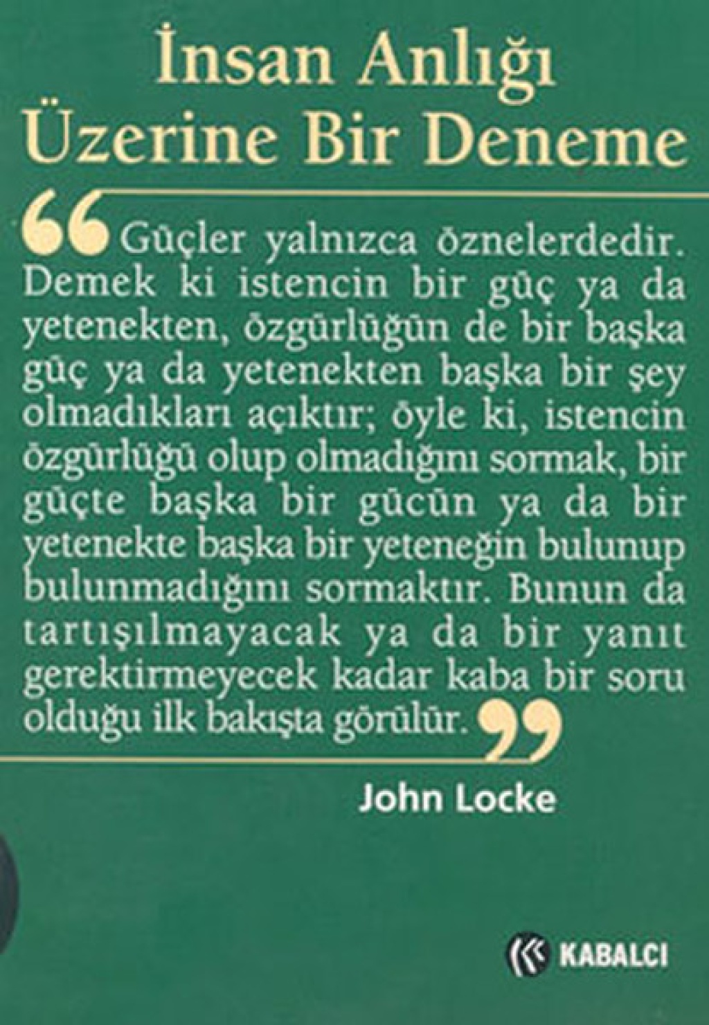 Ilk baskisi 1690 yilinda yapilan insan anligi Üzerine Bir Deneme yüzyillar boyunca Bati felsefesinin basyapitlarindan biri olma niteligini korumustur. Bilgilerin kaynaiginin deneyde ve duyumlarda oldugunu, ruhun da bunlara dayanarak düsünceyi gelistirdigini ileri süren Locke'un felsefesi Descartes'in dogustan idelerini reddeden duyumcu bir maddeciliktir.Yayimlandigi günden bu yana atesli tartismalara neden olan bu temel kitabi degerli felsefecimiz Vehbi Hacikadiroglu'nun özenli çevirisiyle sunuyoruz.
