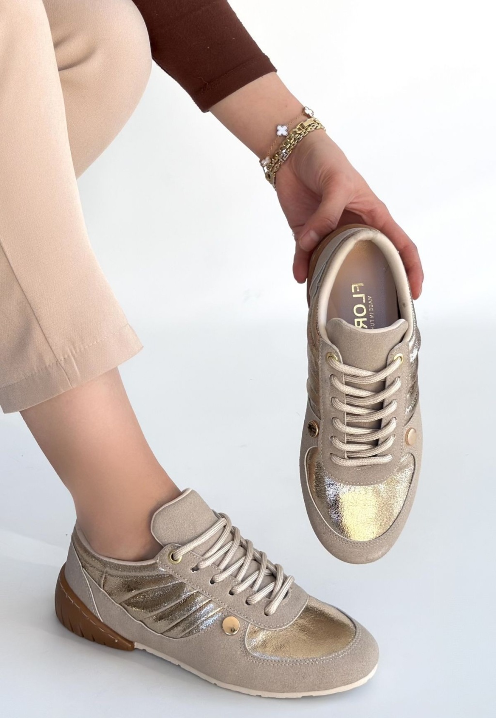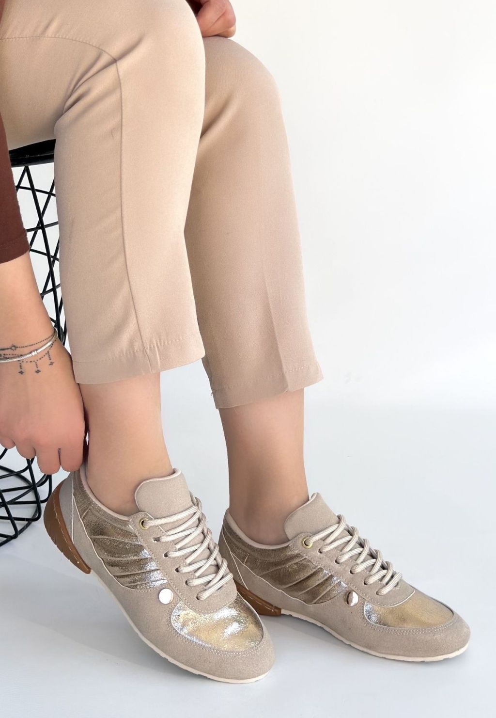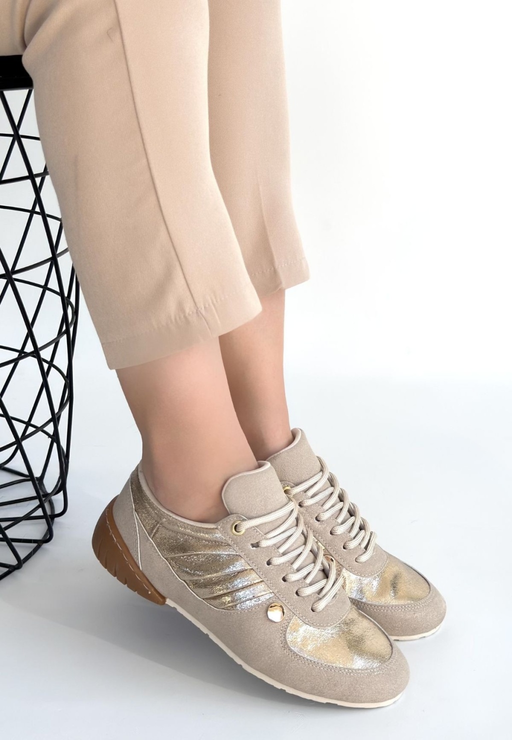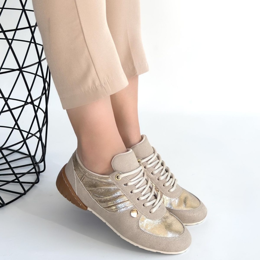 Jawen Bej Nubuk Gold Detaylı Spor Ayakkabı - Lisinya