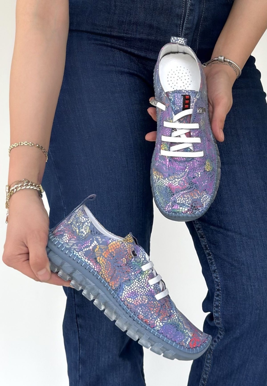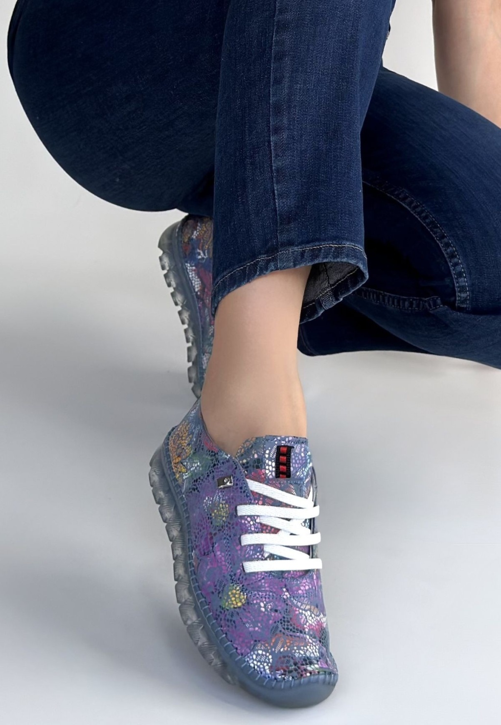 Kinte Mor Desenli Deri Bağcıklı Spor Ayakkabı - Lisinya