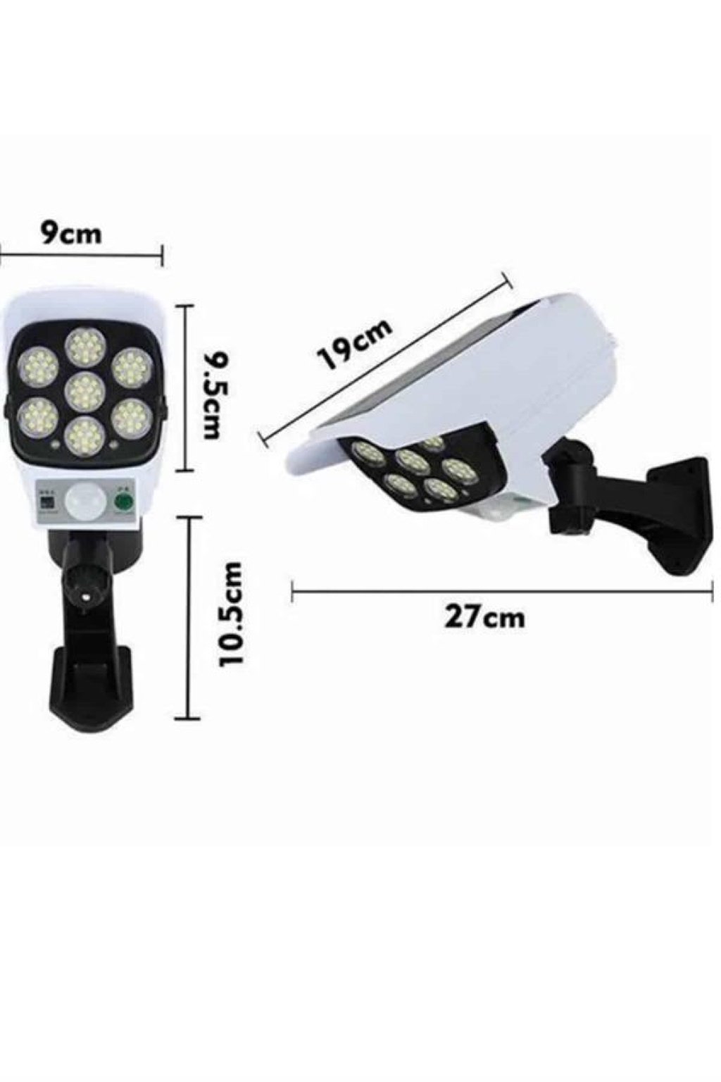 Çift Fonksiyonlu TasarımSahte güvenlik kamerası görünümü sayesinde caydırıcı bir etki yaratırken, aynı zamanda güçlü LED aydınlatmasıyla bahçenizi veya dış mekanınızı aydınlatır. Hem güvenlik hem de dekoratif amaçlı kullanım için idealdir. Güneş Enerjisi ve Uzun Süreli Pil Kullanımı2400mAh yüksek kapasiteli pili sayesinde düşük ışık modunda 40 saate kadar kesintisiz çalışabilir. Ek olarak, güneş paneli sayesinde güneş ışığını emerek enerji tasarrufu sağlar, çevre dostu bir kullanım sunar. Akıllı Hareket Sensörü ile Otomatik AydınlatmaDahili PIR hareket sensörü, 10-20 fit mesafede ve 120 derece aralığında hareket algıladığında ışığı otomatik olarak tetikler. Bahçe, garaj, sundurma veya çim alanlar için mükemmel bir güvenlik aydınlatması sunar. Kolay Kurulum ve Suya Dayanıklı YapıIP66 su geçirmez özelliği sayesinde zorlu hava koşullarına karşı dayanıklıdır. 5 eksenli dönebilen tasarımı ile güneş panelinin ve ışık açısının en iyi şekilde ayarlanmasını sağlar. Kolay montaj imkanı sunarak pratik bir kullanım deneyimi yaşatır.Ürün Markası: Lisinya