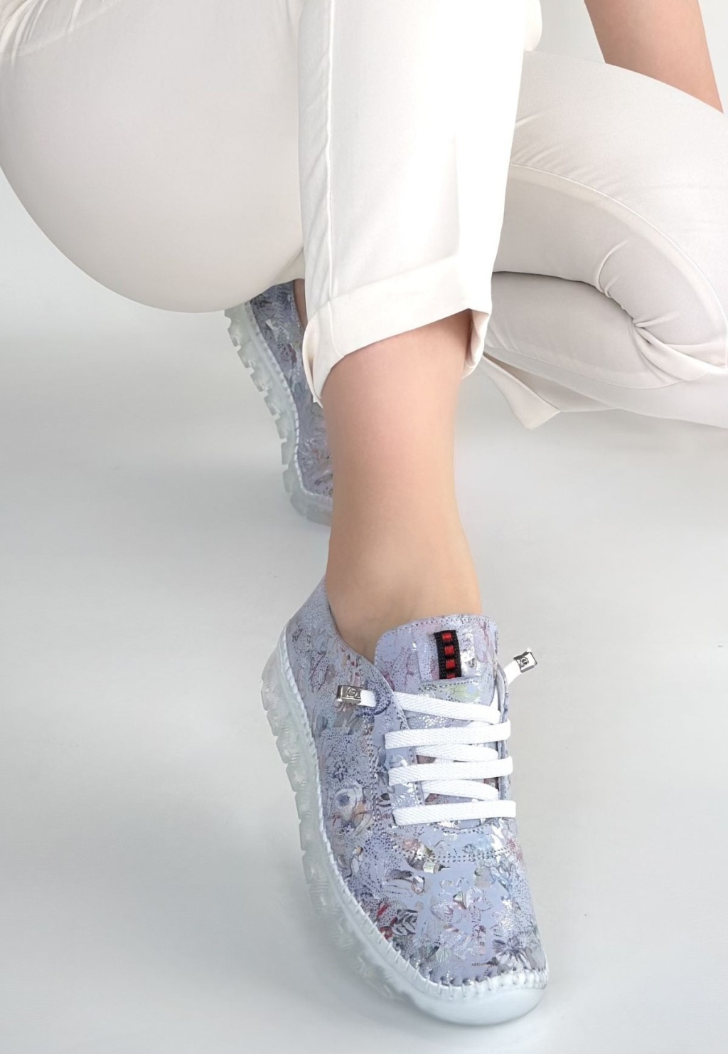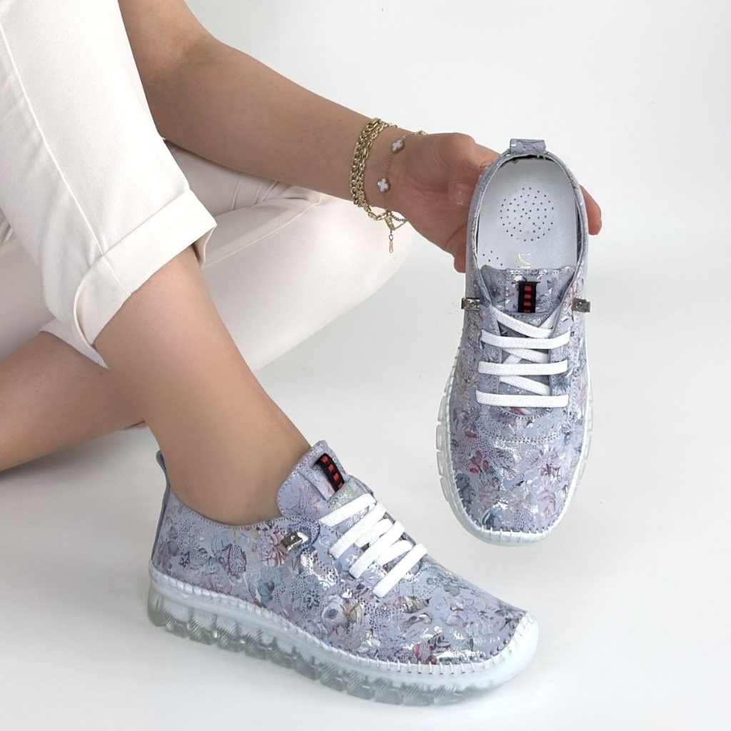 Kinte Lila Desenli Deri Bağcıklı Spor Ayakkabı - Lisinya