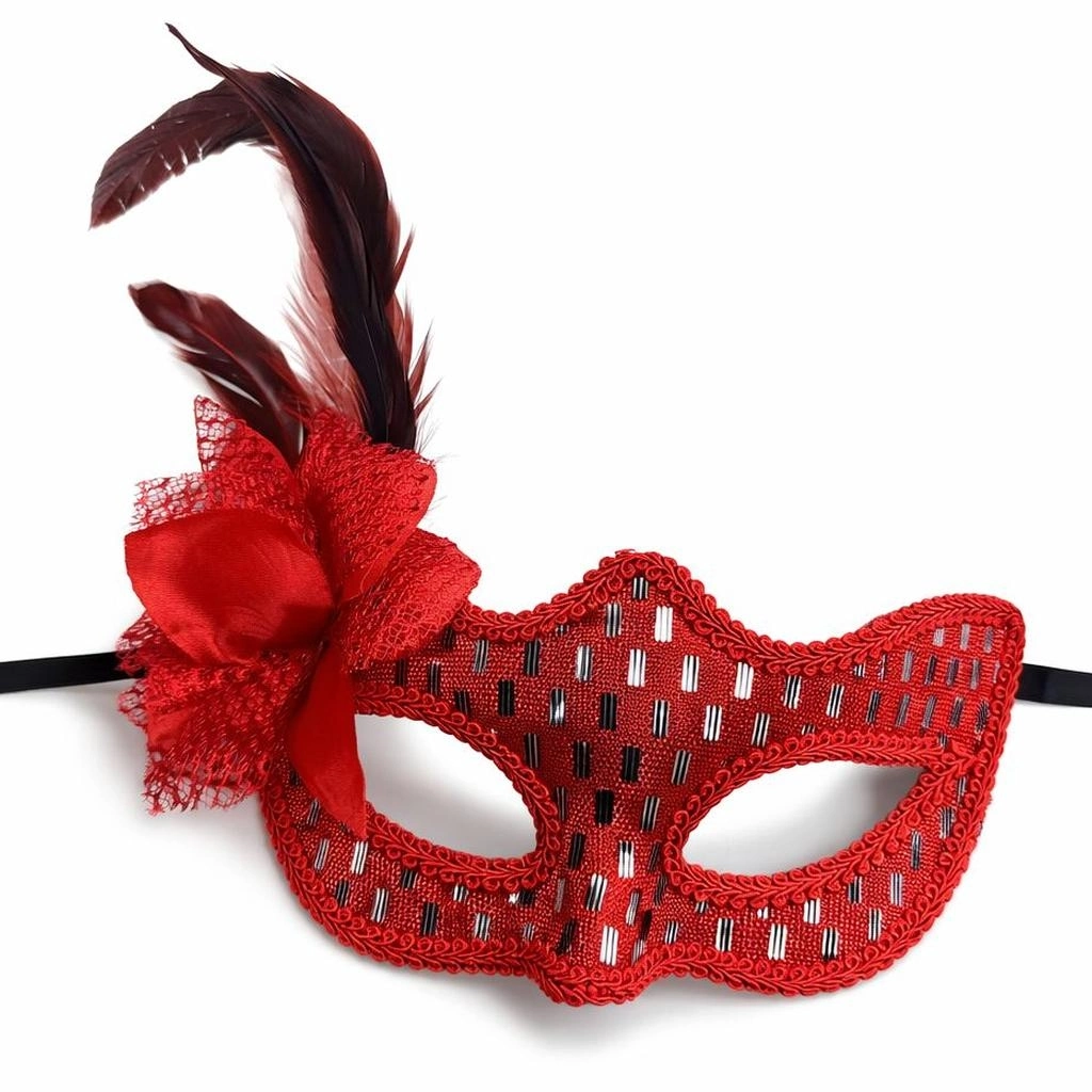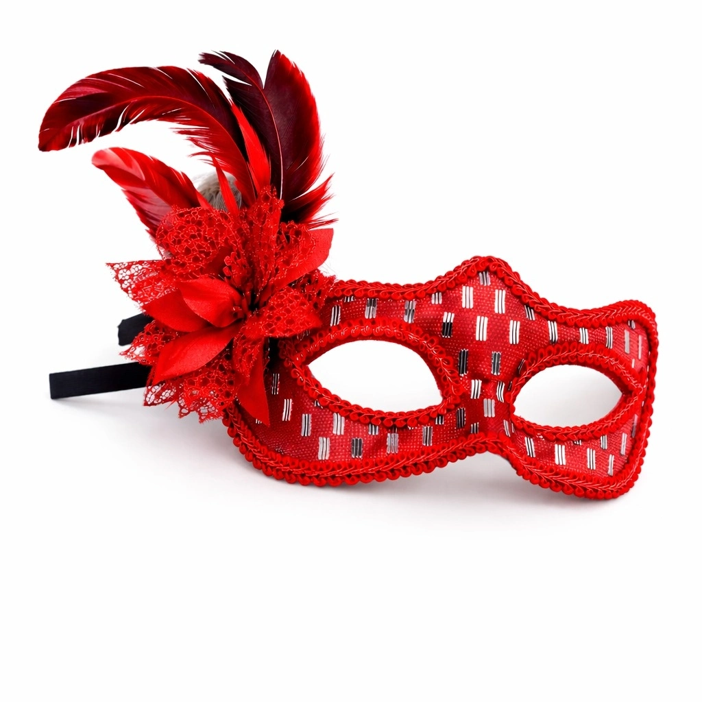 Kırmızı Tüylü Balo Maskesi Kadın Parti Aksesuarı - Lisinya