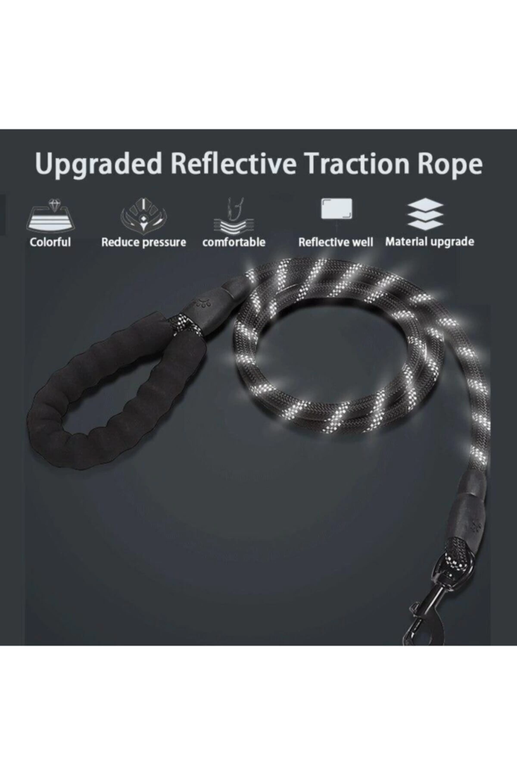 Paket İçeriği: 1 Adet Köpekler İçin Gezdirme Tasması Reflektörlü 130 cm Halat Orta ve Büyük Boy Köpekler İçin Siyah