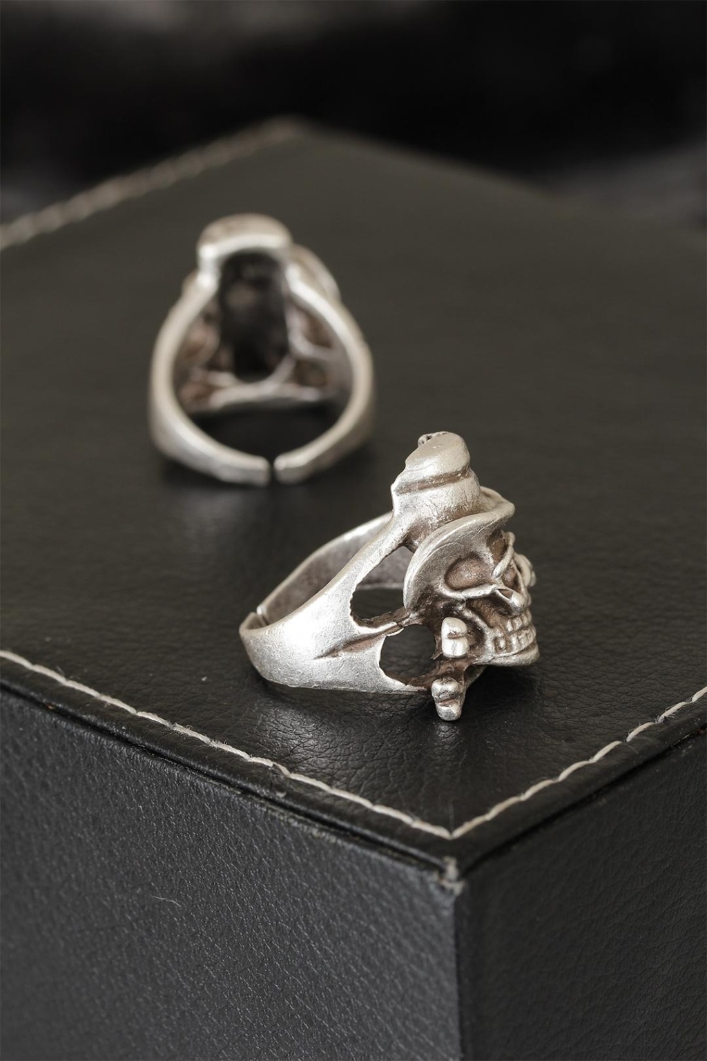 Şıklığa yeni sezon Kuru Kafa Tasarımlı Eskitme Gümüş Renkli Ayarlamalı Model Erkek Yüzük ile imza atacaksınız.