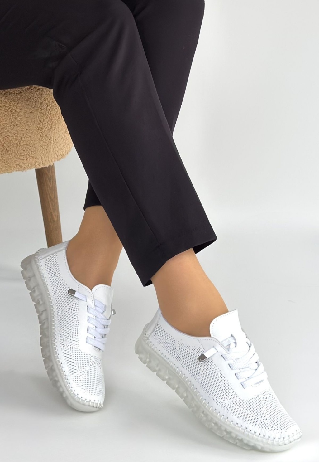 Merja Beyaz Deri Bağcıklı Spor Ayakkabı - Lisinya