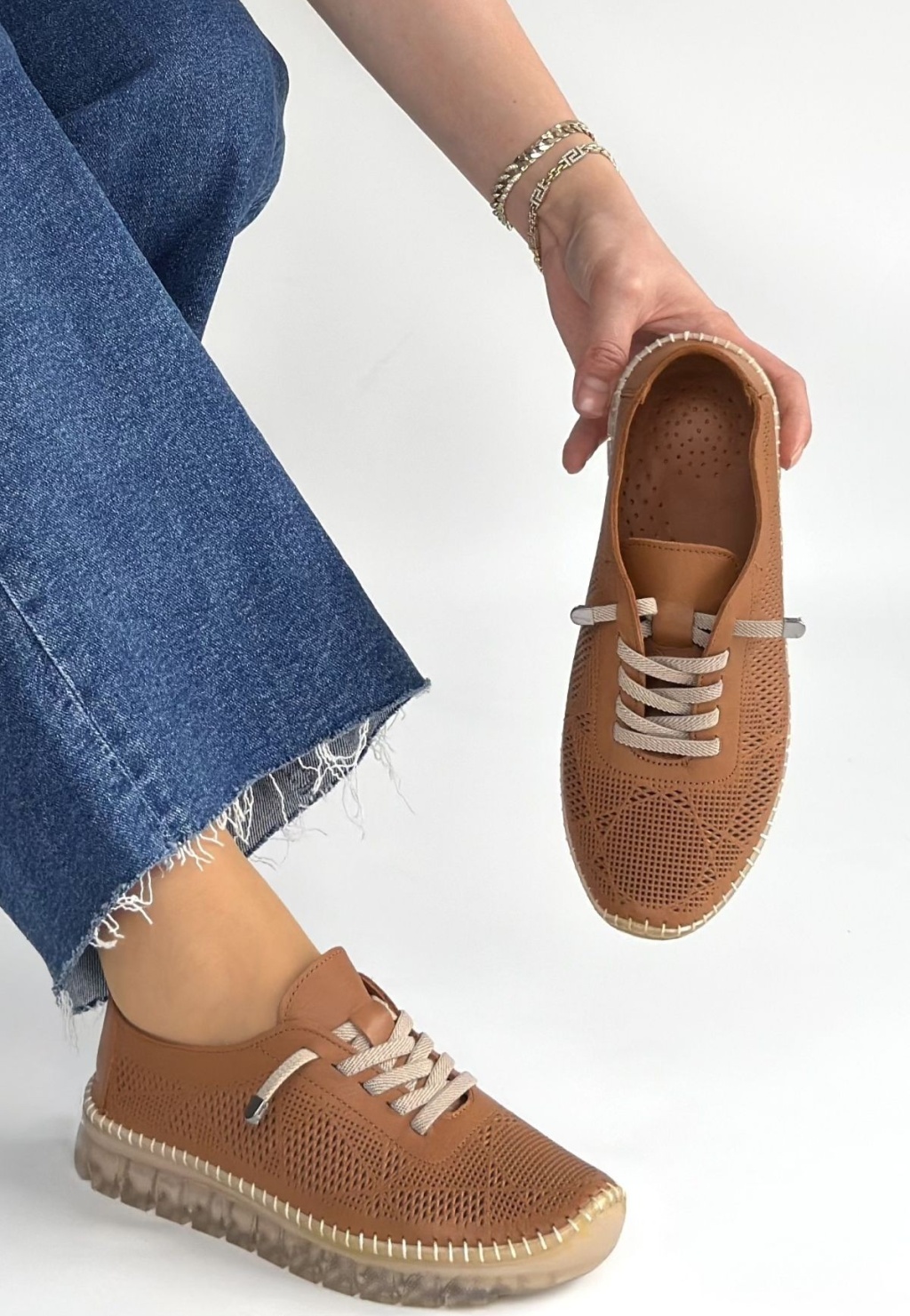 Merja Taba Deri Bağcıklı Spor Ayakkabı - Lisinya