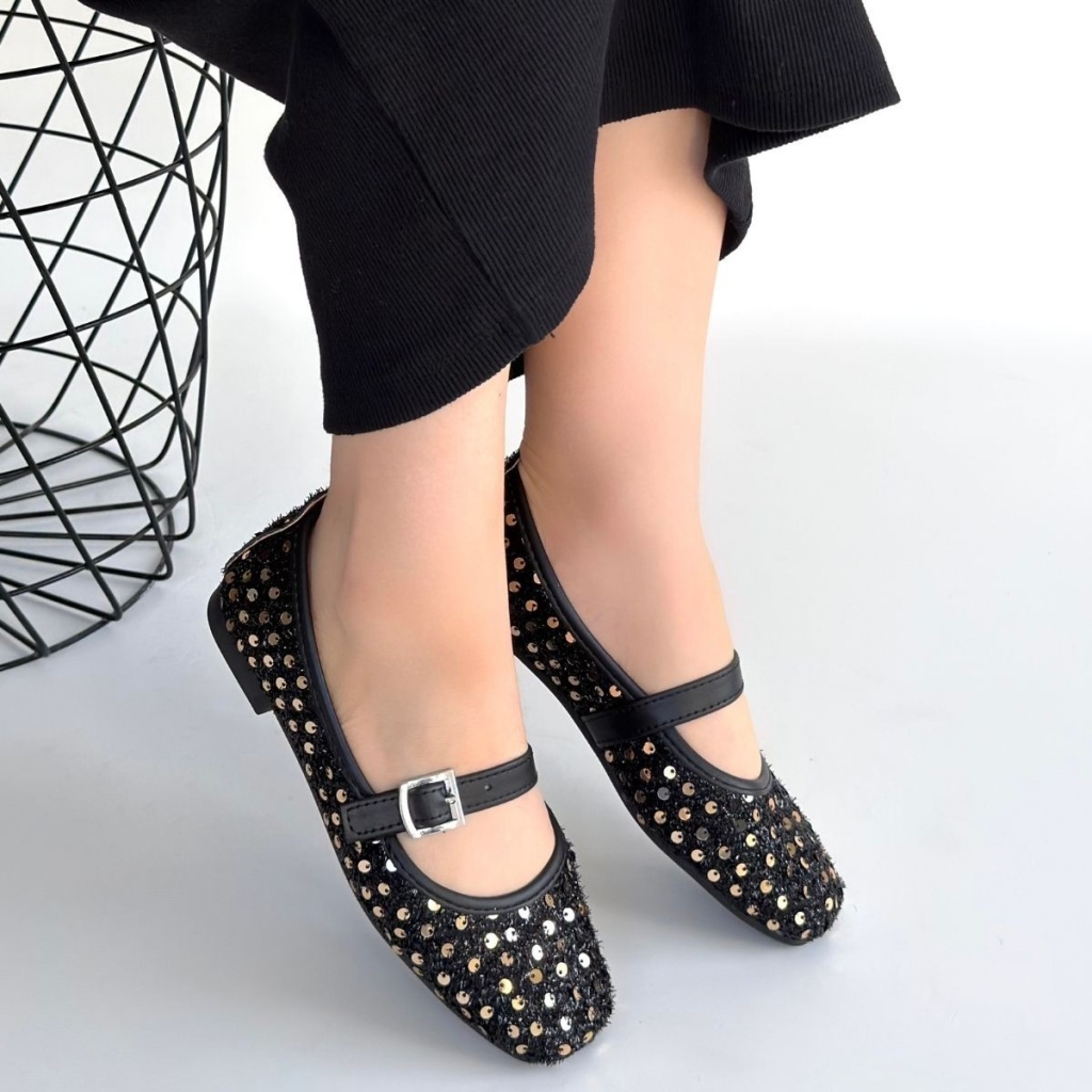 Moden Siyah Süet Babet Ayakkabı - Lisinya
