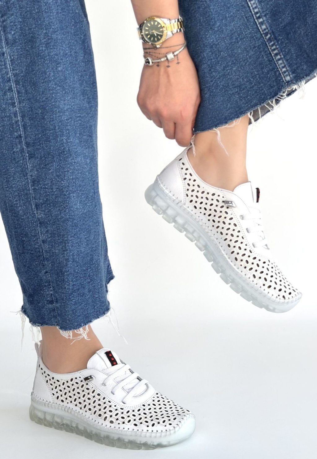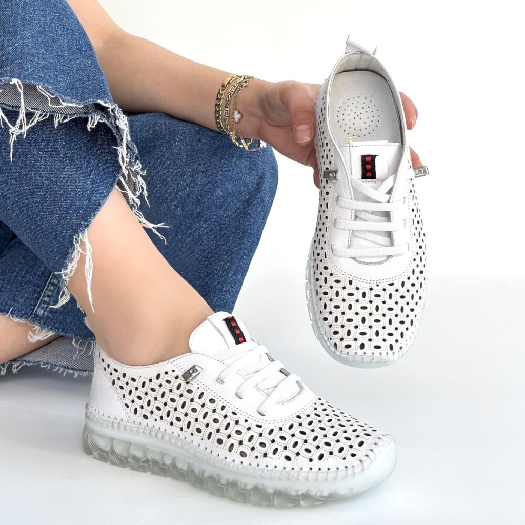Otja Beyaz Deri Lazerli Bağcıklı Spor Ayakkabı - Lisinya