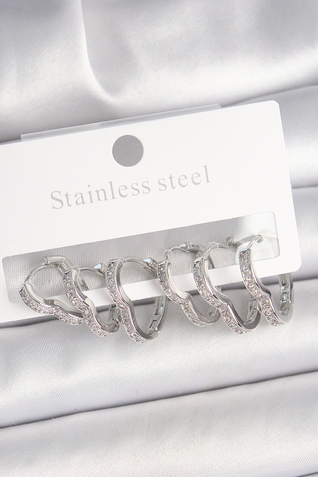 Pirinç Gümüş Renk Zirkon Taşlı 3 Çift Kalp Model Kadın Küpe - Lisinya