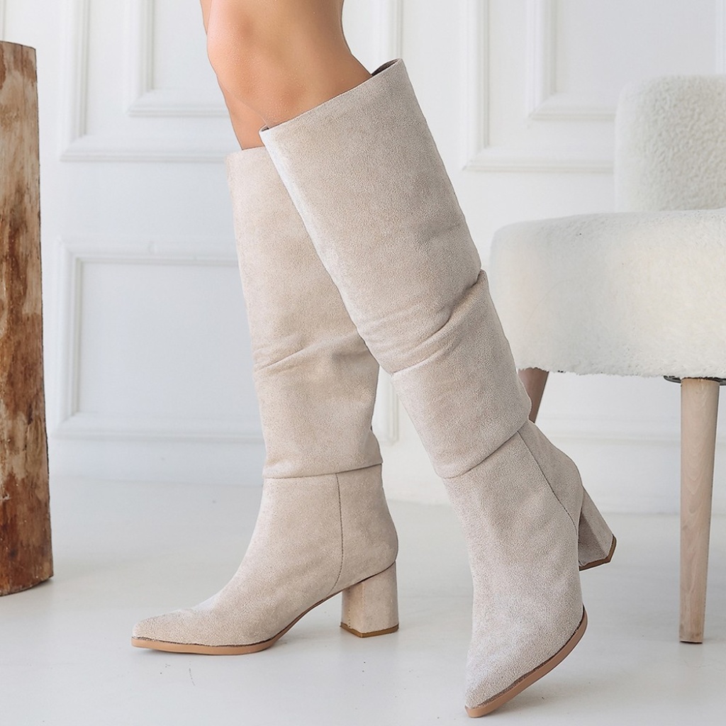 Pitay Bej Süet Topuklu Çizme - Lisinya