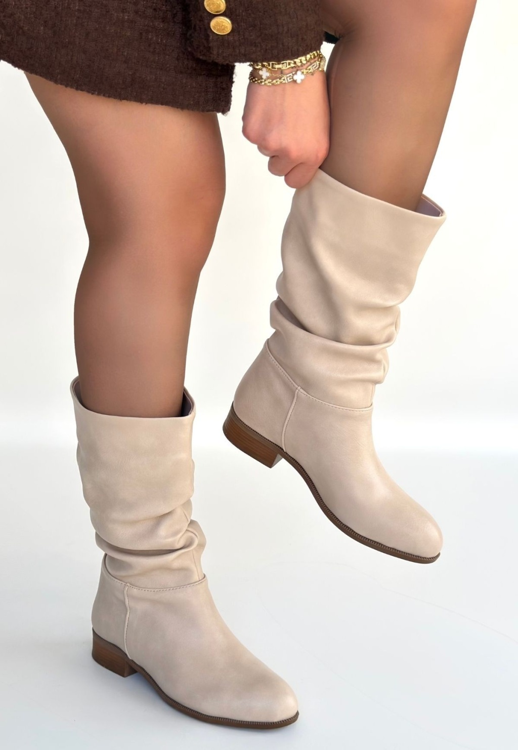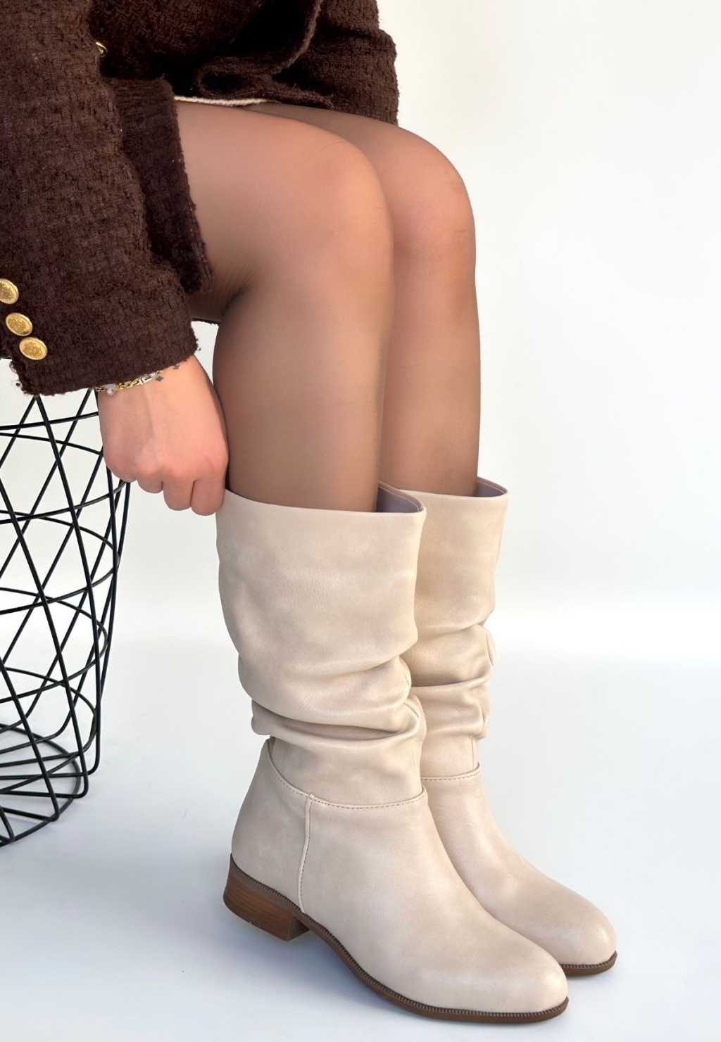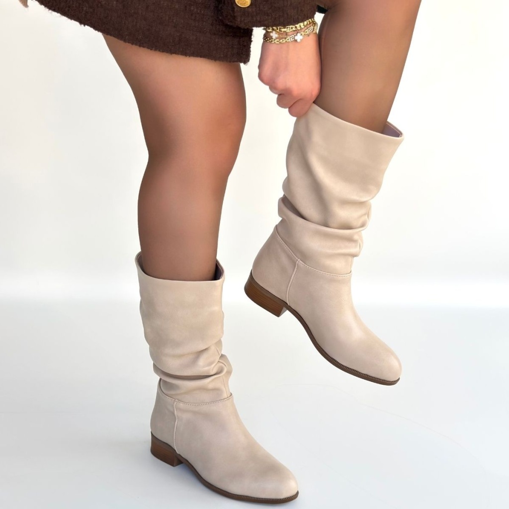 Plod Bej Cilt Körüklü Çizme - Lisinya
