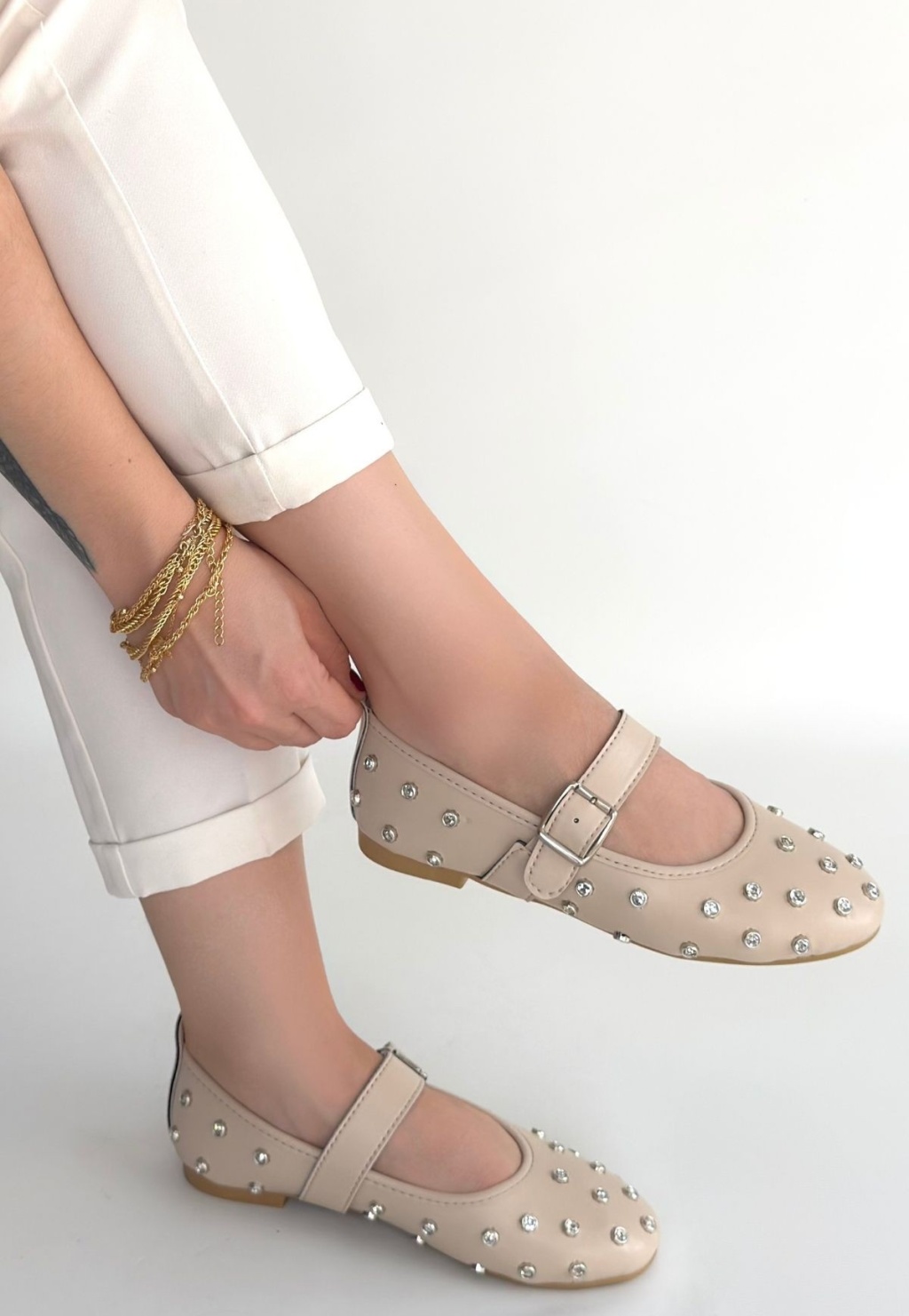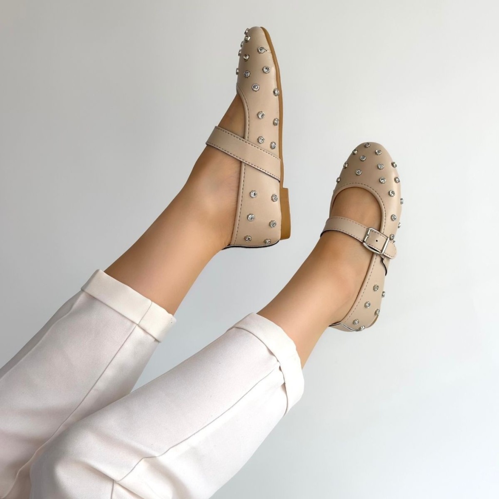 Ritta Bej Cilt Kemerli Babet Ayakkabı - Lisinya