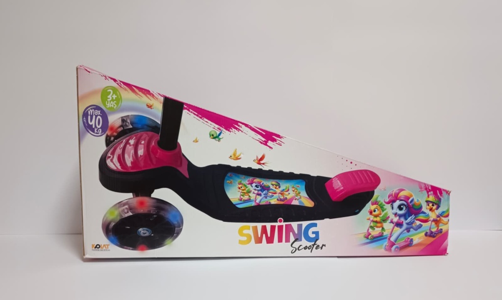 Swing Scooter Çocuk Ürün Özellikleri  Genel Bilgiler  Adı: Swing Scooter / Salıncaklı Scooter Yaş Aralığı: 3-10 yaş arası çocuklar için uygundur. Maksimum Taşıma Kapasitesi: 50 kg Renk Seçenekleri: Mavi, pembe, kırmızı, sarı