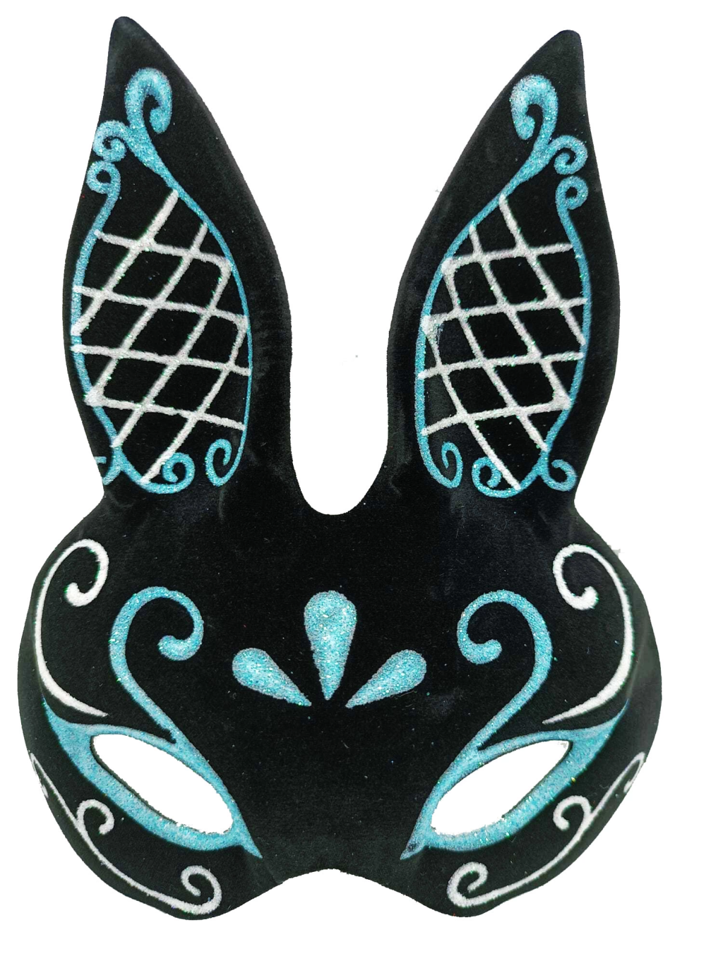 Siyah Renk Mavi Beyaz Simli Siyah Süet Kaplama Tavşan Maskesi 18x16 Cm - Lisinya