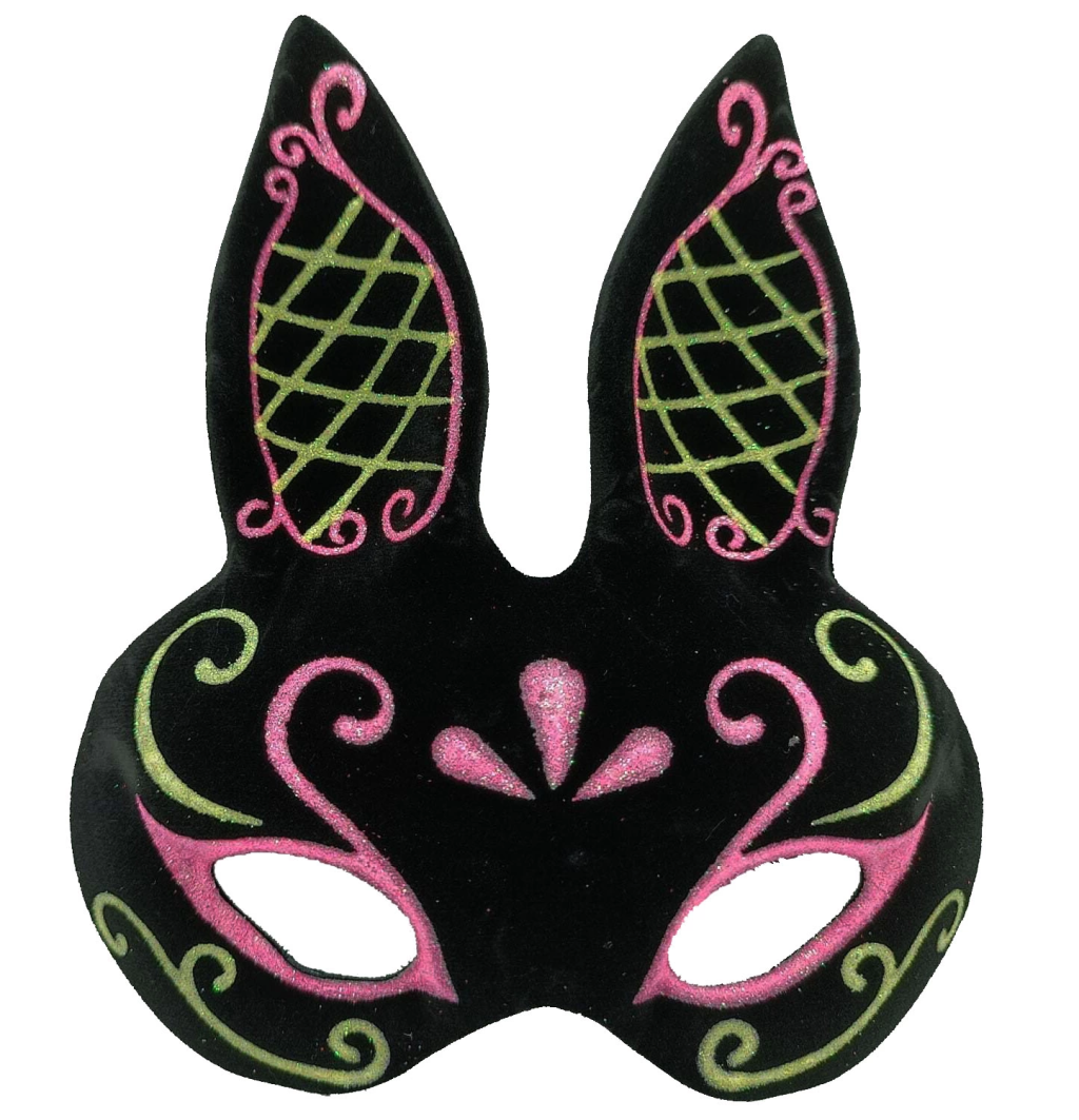 Siyah Renk Pembe Gold Simli Siyah Süet Kaplama Tavşan Maskesi 18x16 Cm - Lisinya