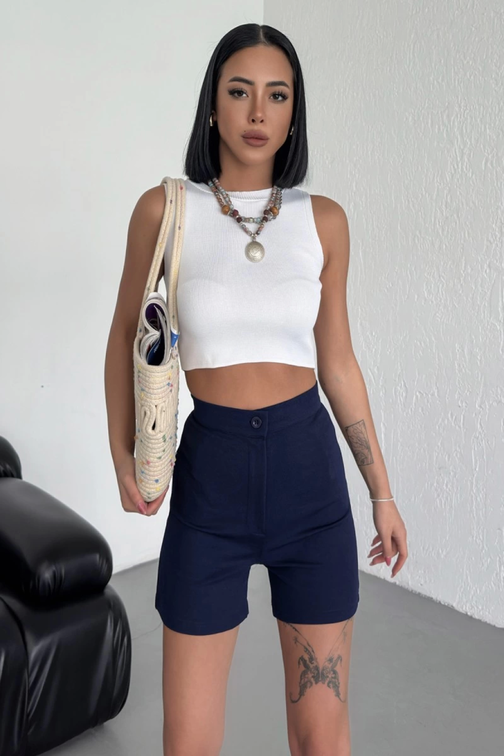 Tarz ve Rahatlığı Bir Arada Sunan Yüksek Bel Esnek Likralı Krep Şort Lacivert-Yazın serin rüzgarlarını hissetmek isteyenler için tasarlanan lacivert yüksek bel esnek likralı krep şort, hafifliği ve rahatlığı bir arada sunuyor! Likralı kumaşı, hareket özgürlüğünüzü kısıtlamadan gün boyu konfor sağlarken, lacivert rengiyle ferahlık ve tarzı birleştiriyor.-Bu lacivert krep şort, plaj günlerinden sokak stilinize kadar her ortamda mükemmel uyum sağlayacak şekilde tasarlandı. Esneklik ve nefes alabilirlik sunan dokusu, sıcak havalarda serin kalmanızı sağlarken, yüksek bel tasarımı da mükemmel bir uyum ve şıklık katıyor.-Gardırobunuzun canlı ve enerjik parçası haline gelecek bu lacivert krep şortu, favori tişörtünüz veya gömleğinizle kombinleyerek kişisel tarzınızı yansıtabilir ve her ortamda dikkat çekici bir görünüm elde edebilirsiniz.-Yazın ferahlatıcı tonlarını ve rahatlığını üzerinizde hissetmek istiyorsanız, lacivert yüksek bel esnek likralı krep şort tam size göre! Tarzınızı ve konforunuzu bir arada yaşamak için bu şortu gardırobunuza ekleyin ve yazın keyfini çıkarın. S beden Ouml;lçüleri: Bel: 34 cm, ön ağ:31 cm Yan Boy:41 cm, iç boy: 11 cm Kendi bedeninizi tercih edebilirsiniz Esnek likralı kumaş Yüksek Bel Fermuar ve düğme kapamalı Tam, fit kalıp Ürün dokusu ve renkleri stüdyo çekimlerinde ışık dolayasıyla farklılık gösterebilir. Ürün Markası: Lisinya