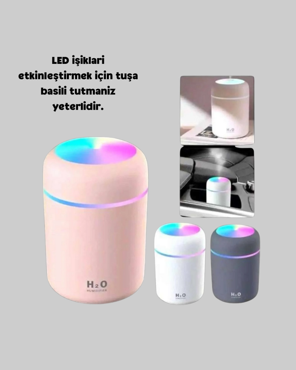 Modern ve minimal tasarımıyla öne çıkan bu mini nemlendirici, hem işlevsel hem de estetik bir hava aksesuarıdır. USB güç bağlantısı sayesinde bilgisayar, powerbank veya adaptörlerle kolayca çalışır.Kapağını çevirerek açın, suyu ekleyin ve tek tuşla çalıştırın! LED ışık modu için tuşa basılı tutabilir, püskürtme seçeneklerini tek dokunuşla değiştirebilirsiniz. Sessiz çalışma teknolojisiyle uyku sırasında bile rahatsız etmez. Yaşam alanlarınıza tazelik ve konfor katmak için ideal bir seçimdir.Ürün Markası: Lisinya