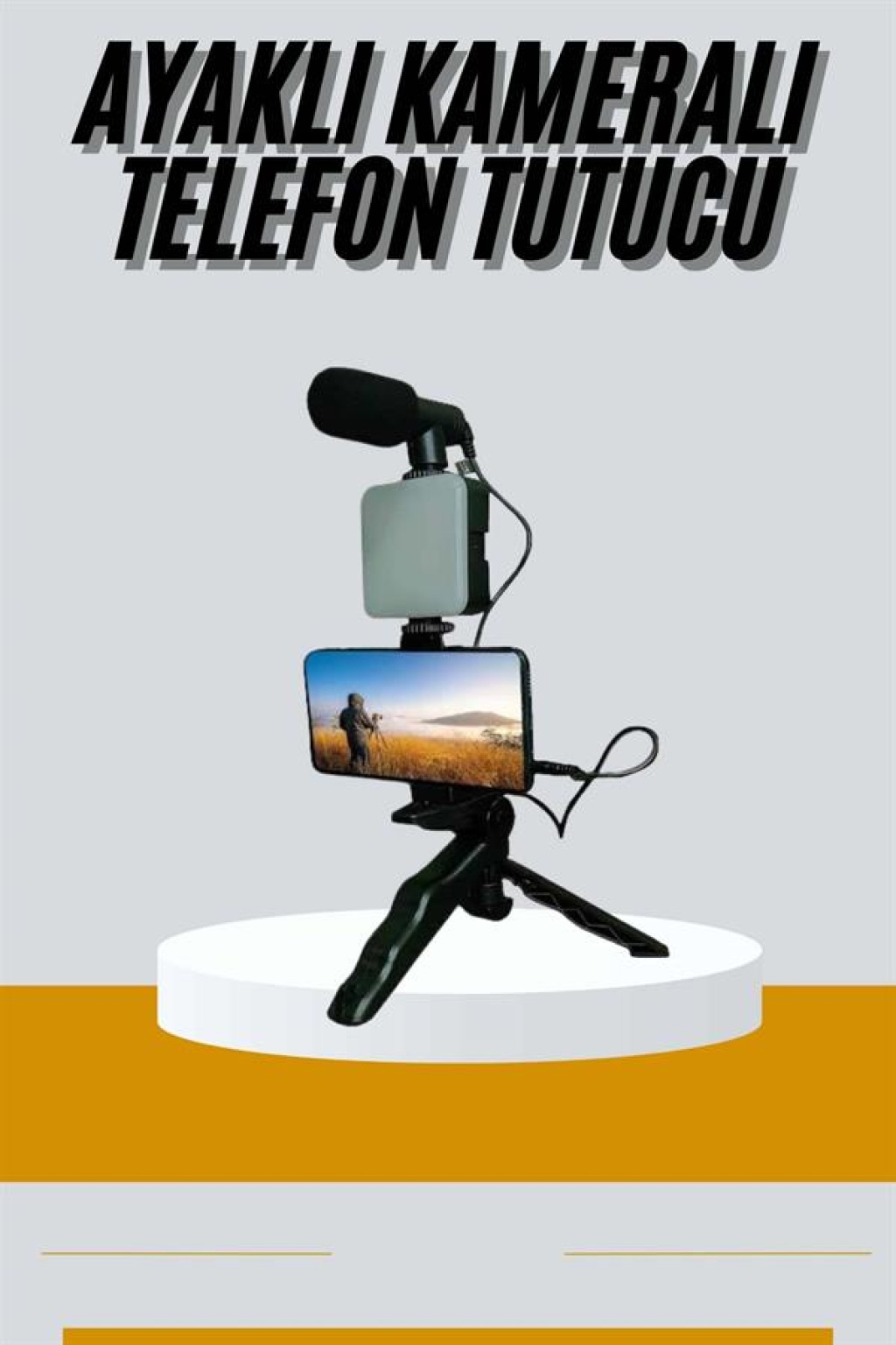 Tripod Telefon Tutucu Kumandalı Mikrofon Led Işık Vlog Video Kayıt - Lisinya