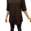 Kadın Double Kol Yandan Yırtmaçlı Bisiklet Yaka T-shirt-Siyah