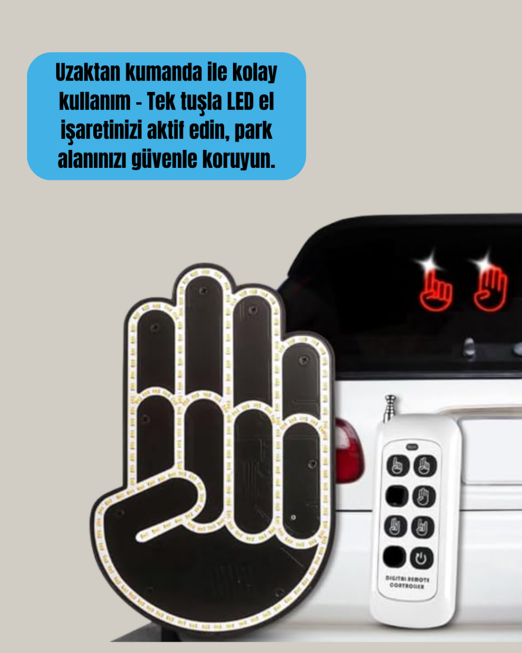 Bu uzaktan kumandalı LED el park uyarı cihazı, kutu içerisindeki cırt cırtlar sayesinde ekstra aparat gerektirmeden kolayca monte edilir. Duvar, araç camı veya düz yüzeylere hızlıca yapıştırabilirsiniz. Montaj için profesyonel yardım almanıza gerek kalmaz, dakikalar içinde kullanıma hazır hale gelir. Ana cihaz, el hareketiyle kontrol edilebilen bir LED el simgesine sahiptir. Uzaktan kumandası ile cihazı açıp kapatabilir, uzun basma özelliği ile el simgesini yanıp sönecek şekilde ayarlayabilirsiniz. Bu sayede görünürlüğü artırarak park alanınızı ve güvenliğinizi en üst seviyeye çıkarabilirsiniz.Ürün Markası: Lisinya