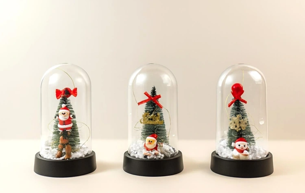 Yılbaşı Temalı Işıklı Dekoratif Cam Fanus Alk5076 Ürün Ölçüleri 15*8 Cm