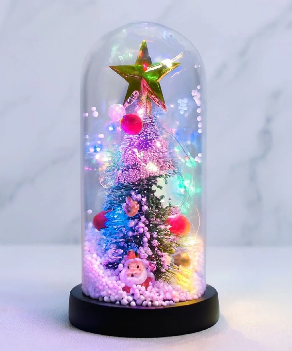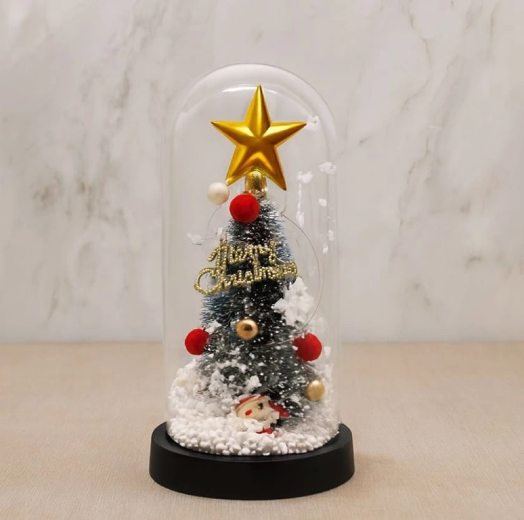 Yılbaşı Temalı Işıklı Dekoratif Cam Fanus Alk5082 Ürün Ölçüleri 21*11 Cm