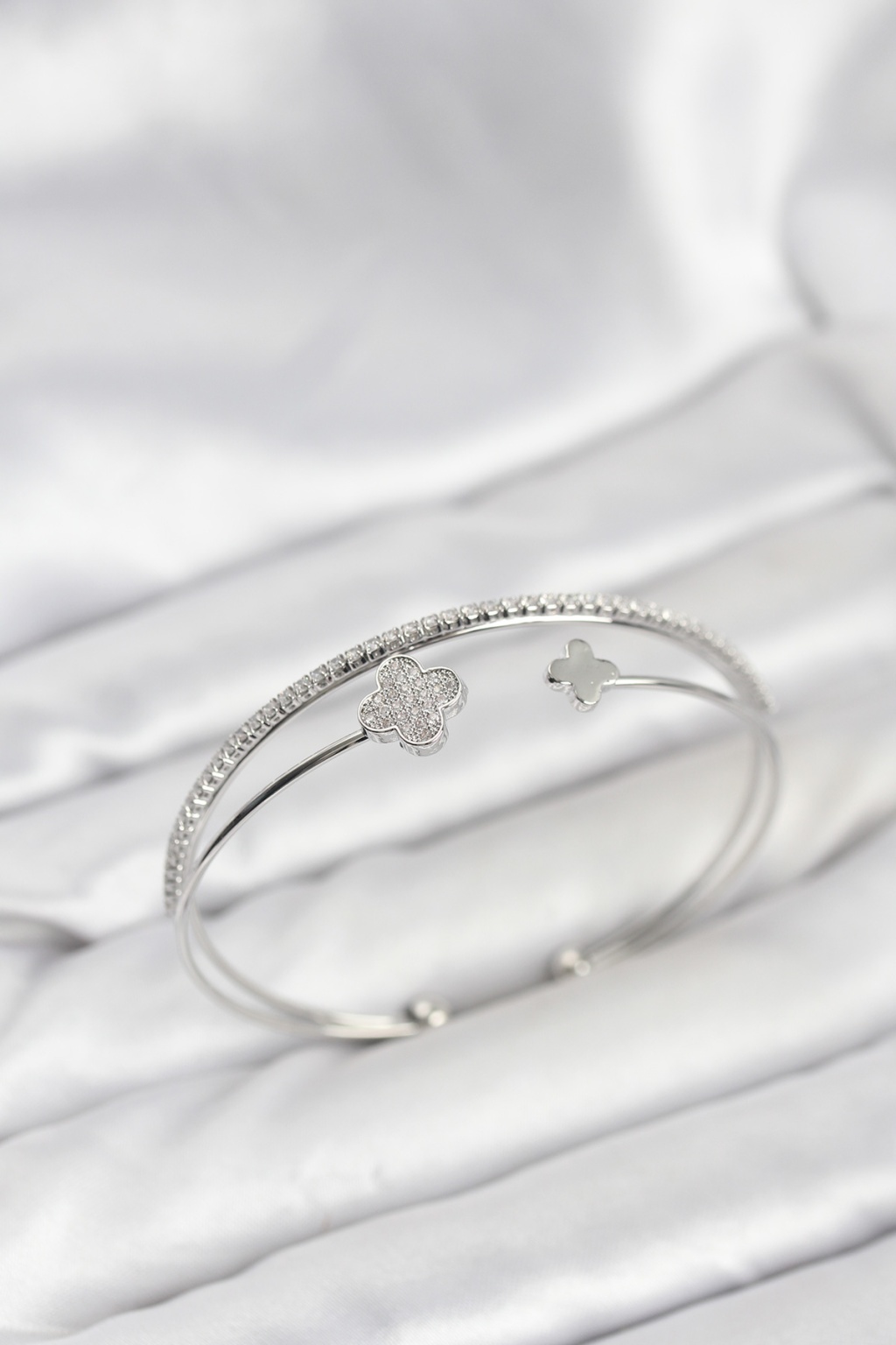 Yonca Model Pirinç Gümüş Renk Kadın Bileklik - Lisinya