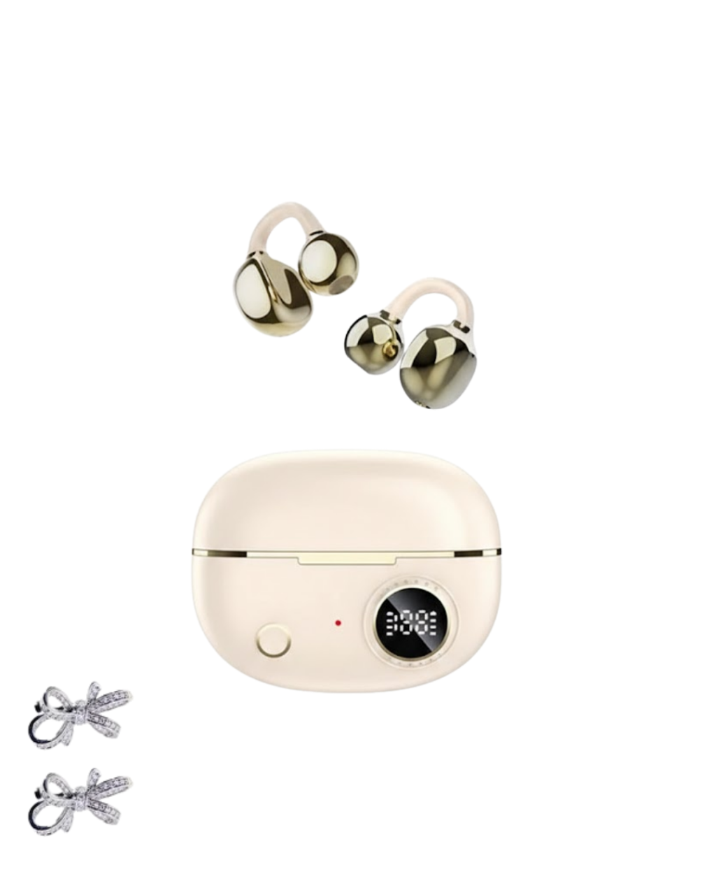 Bu kablosuz Bluetooth kulaklık, kulak klipsli yapısı sayesinde güvenli ve konforlu bir kullanım deneyimi sunar. Günlük hayatta, iş ortamında veya seyahatlerde rahatlıkla tercih edilebilir. Hafif ve kompakt yapısı, uzun süreli kullanımda bile rahatsızlık oluşturmaz.Uzun pil ömrü, yoğun tempolu kullanıcılar için büyük avantaj sağlar. Kristal netliğinde ses kalitesi, her aramayı daha anlaşılır ve verimli hale getirir. Şık ve zarif tasarımı sayesinde stilinizi tamamlayan modern bir aksesuar görevi görür.Set içeriğinde yer alan 2 adet kurdele küpe hediyesi, ürünü özel ve hediye edilebilir bir set haline getirir.Ürün Markası: Lisinya