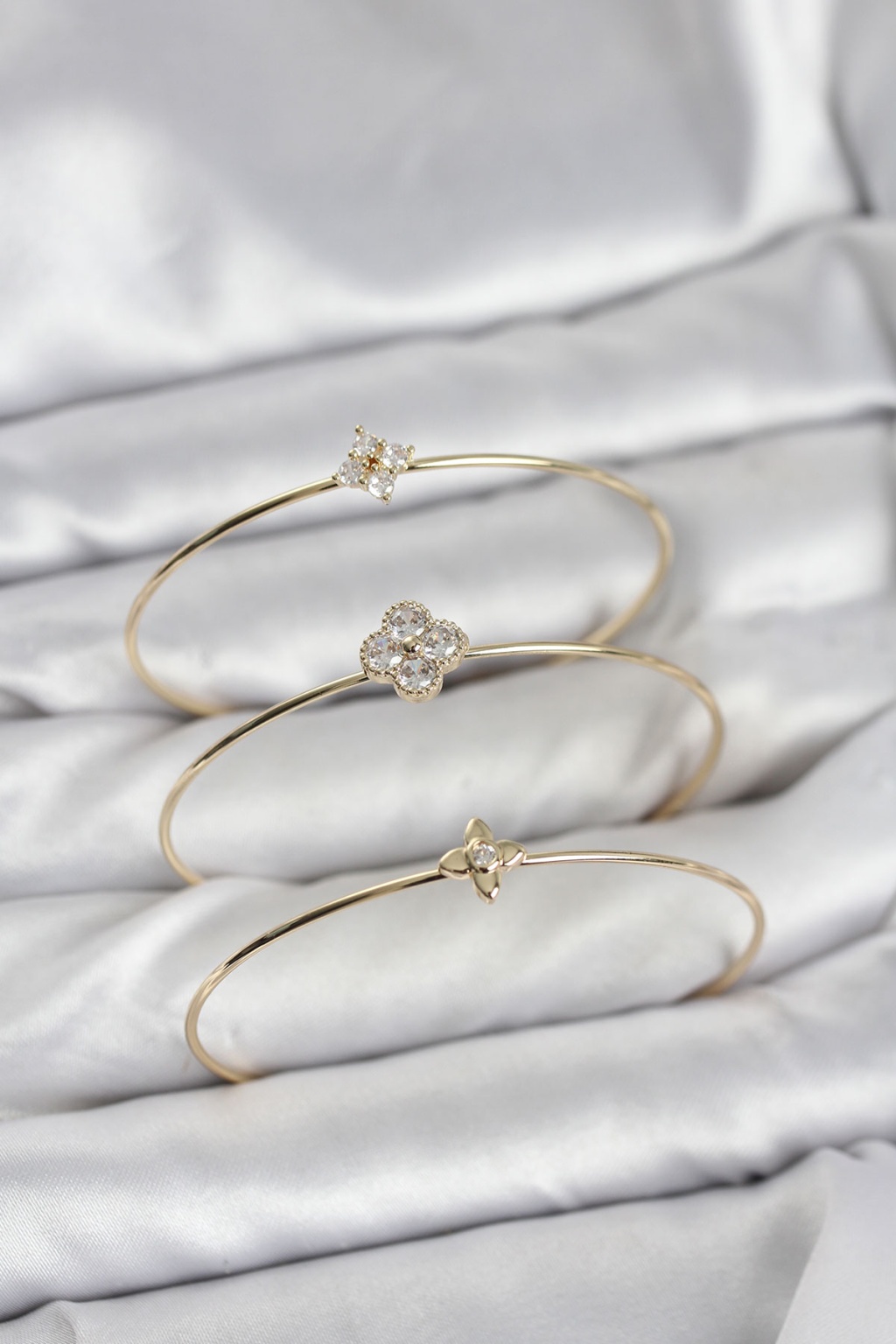 Zirkon Taşlı Gold Renk Yonca Tasarım 3'lü Kadın Bileklik Kombini - Lisinya